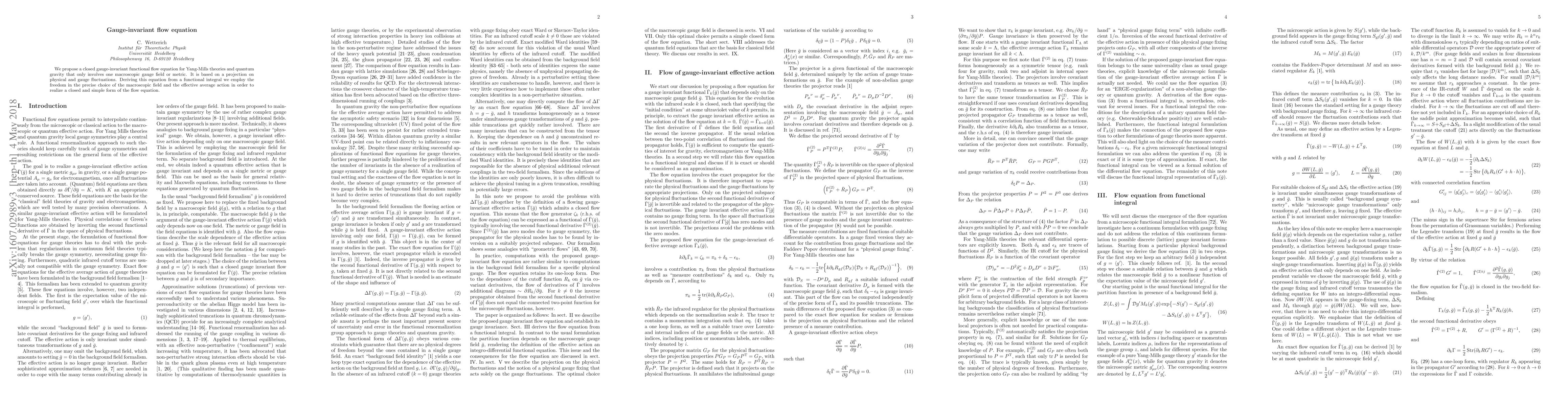 We propose a closed gauge-invariant functional flow equation for Yang-Mills theories and quantum gravity that only involves one macroscopic gauge field or metric. It is based on a projection on physical and gauge fluctuations. Deriving this equation from a functional integral we employ the freedom in the precise choice of the macroscopic field and the effective average action in order to realize a closed and simple form of the flow equation.
