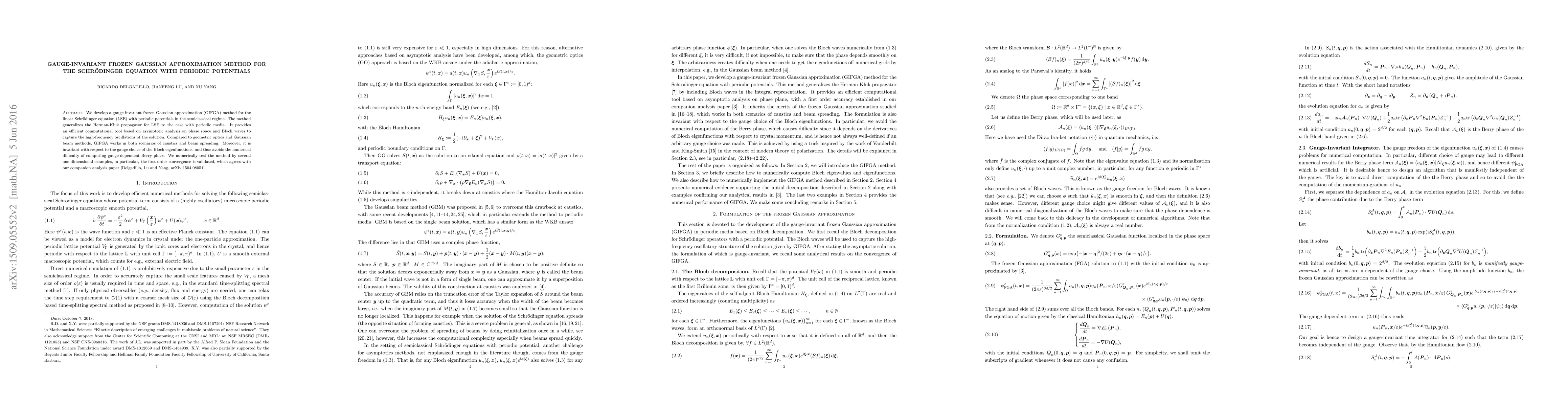 The paper introduces a gauge-invariant frozen Gaussian approximation (GIFGA) method for solving the linear Schrödinger equation with periodic potentials in the semiclassical regime, offering an efficient computational tool that generalizes the Herman-Kluk propagator and works in both caustic and beam spreading scenarios. The method is gauge-invariant and avoids numerical issues related to the computation of gauge-dependent Berry phase.