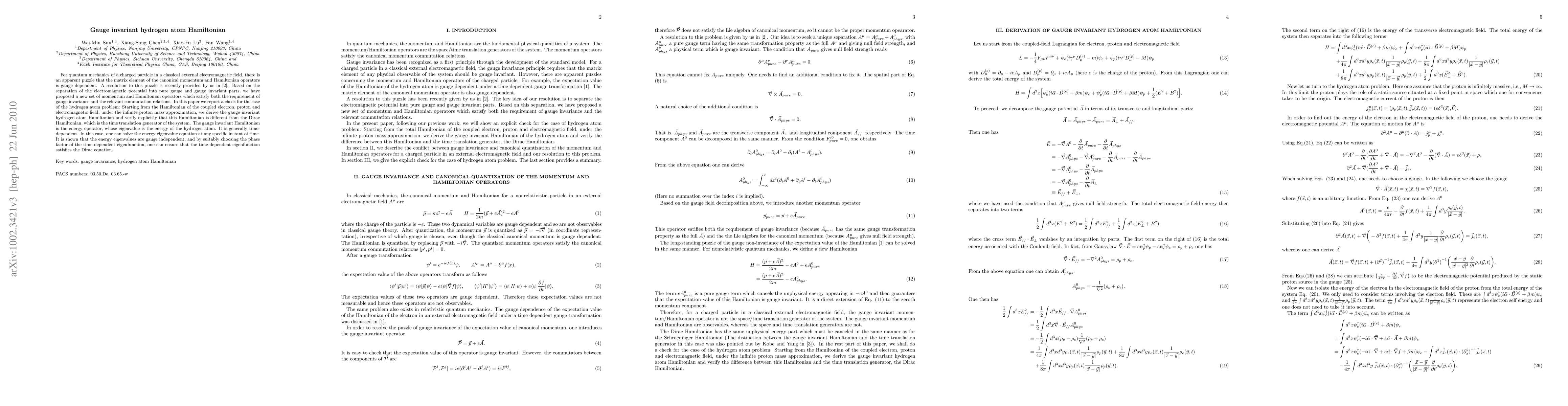 Researchers developed a gauge-invariant Hamiltonian for the hydrogen atom, resolving a long-standing puzzle in quantum mechanics, and showed that its eigenvalues are independent of gauge choices.