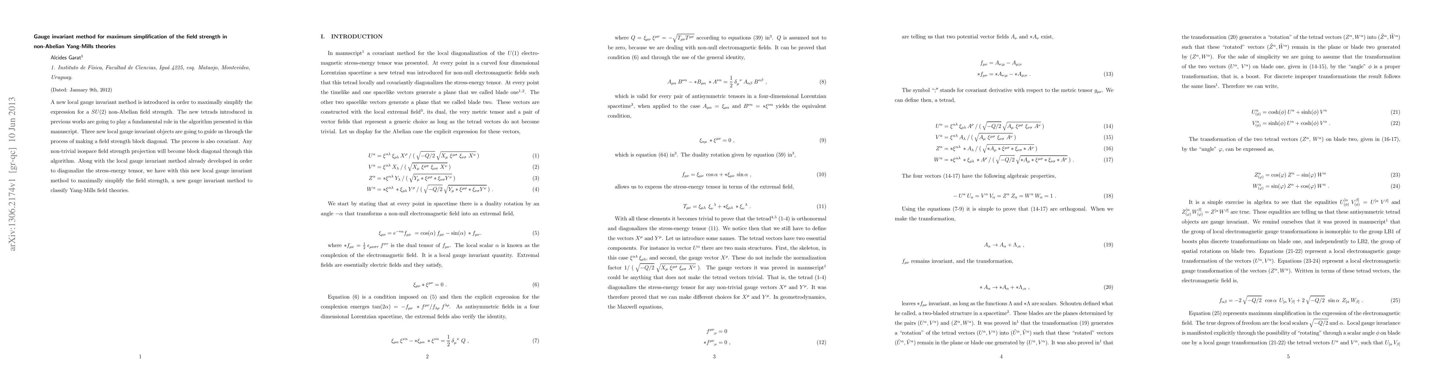 A new local gauge invariant method is introduced in order to maximally simplify the expression for a SU(2) non-Abelian field strength. The new tetrads introduced in previous works are going to play a fundamental role in the algorithm presented in this manuscript. Three new local gauge invariant objects are going to guide us through the process of making a field strength block diagonal. The process is also covariant. Any non-trivial isospace field strength projection will become block diagonal through this algorithm. Along with the local gauge invariant method already developed in order to diagonalize the stress-energy tensor, we have with this new local gauge invariant method to maximally simplify the field strength, a new gauge invariant method to classify Yang-Mills field theories.