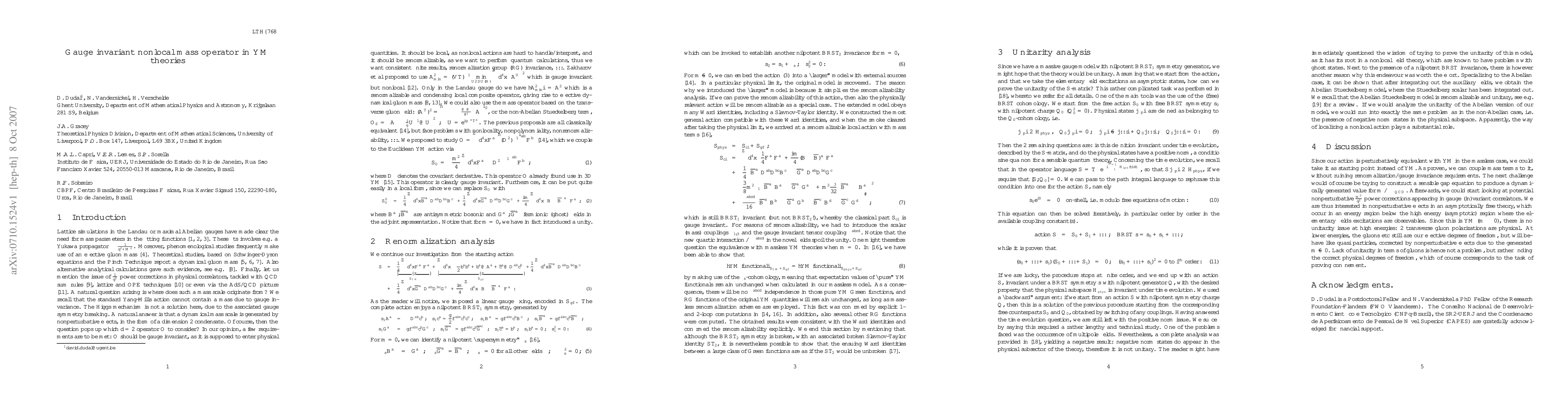 We briefly describe the construction of a renormalizable gauge model based on the nonlocal gauge invariant mass operator F1/D^2F. We also take a look at the unitarity of the resulting model.