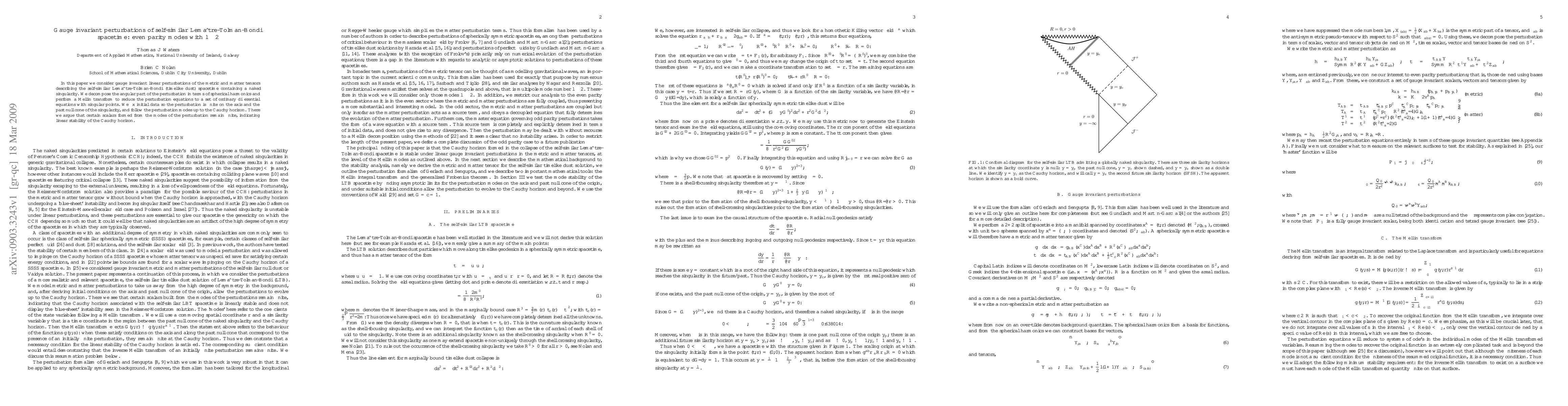 This paper investigates gauge invariant linear perturbations of the Lemaître-Tolman-Bondi spacetime, focusing on even parity modes with angular momentum $l\geq 2$. It demonstrates that certain scalars formed from these perturbations remain finite up to the Cauchy horizon, suggesting linear stability.