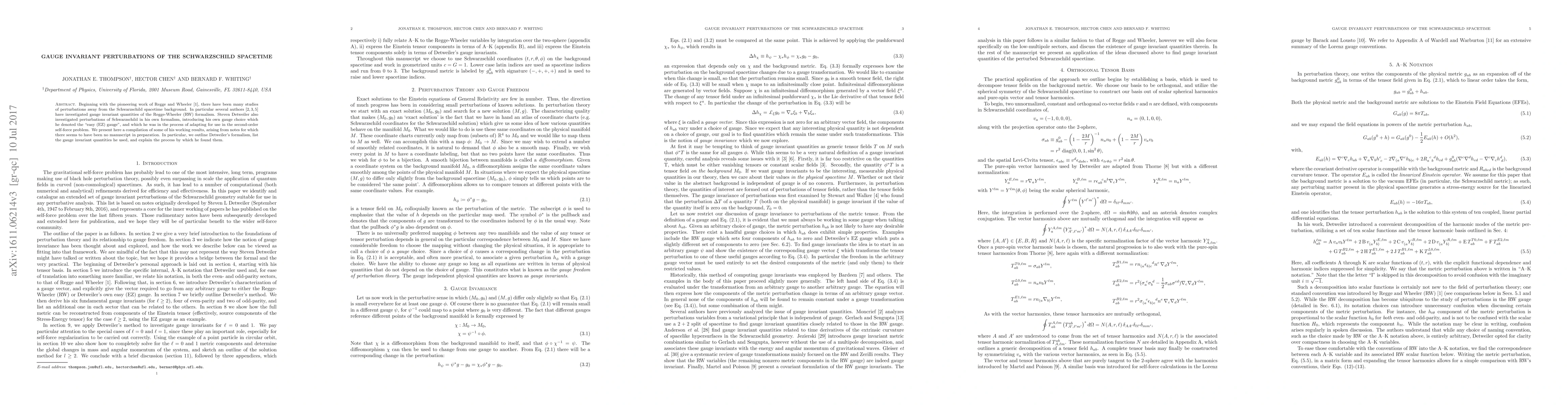Beginning with the pioneering work of Regge and Wheeler (Phys. Rev. 108, 1957), there have been many studies of perturbations away from the Schwarzschild spacetime background. In particular several authors (e.g. Moncrief, Ann. Phys 88, 1974) have investigated gauge invariant quantities of the Regge-Wheeler (RW) gauge. Steven Detweiler also investigated perturbations of Schwarzschild in his own gauge, which he denoted the "easy (EZ) gauge", and which he was in the process of adapting for use in the second-order self-force problem. We present here a compilation of some of his working results, arising from notes for which there seems to have been no manuscript in preparation. In particular, we list the gauge invariant quantities used by Detweiler, as well as explain the process by which he found them.