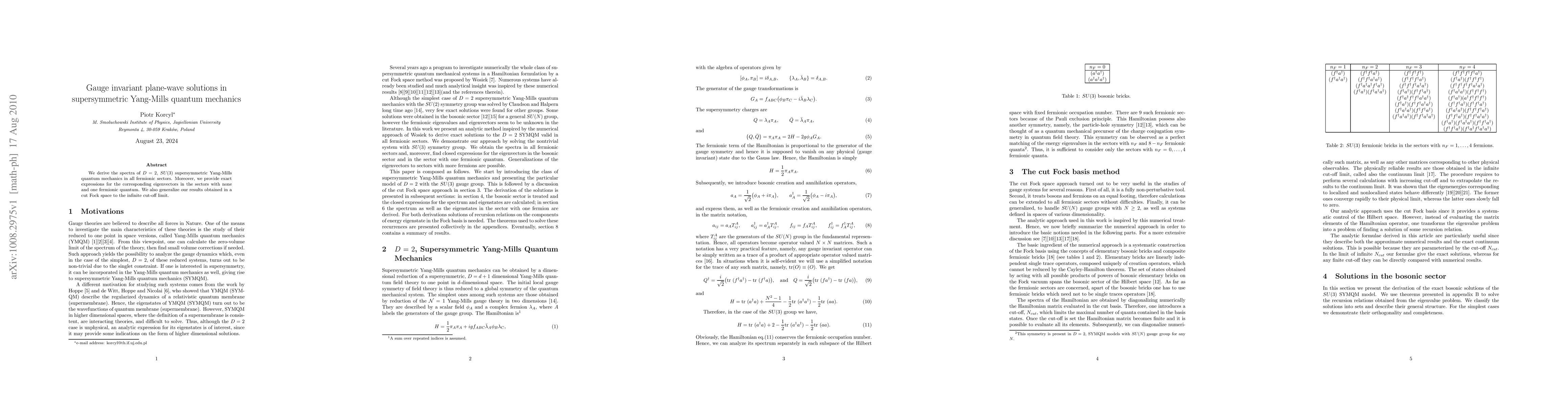 Summary: This paper derives the spectra and exact eigenvectors for D=2, SU(3) supersymmetric Yang-Mills quantum mechanics in various fermionic sectors, and generalizes findings from a cut Fock space to the infinite cut-off limit.