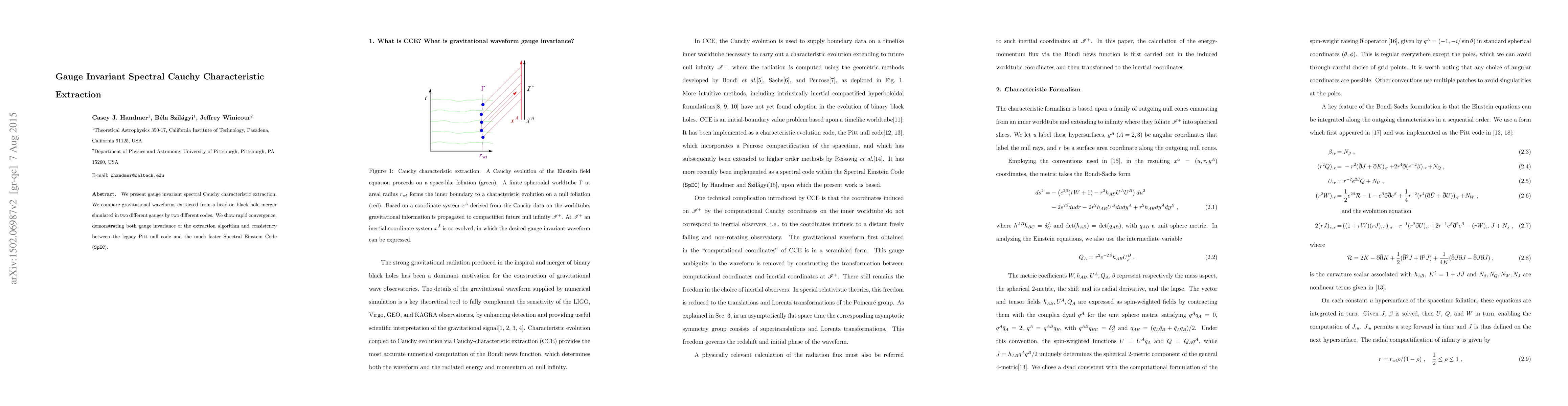 We present gauge invariant spectral Cauchy characteristic extraction. We compare gravitational waveforms extracted from a head-on black hole merger simulated in two different gauges by two different codes. We show rapid convergence, demonstrating both gauge invariance of the extraction algorithm and consistency between the legacy Pitt null code and the much faster Spectral Einstein Code (SpEC).