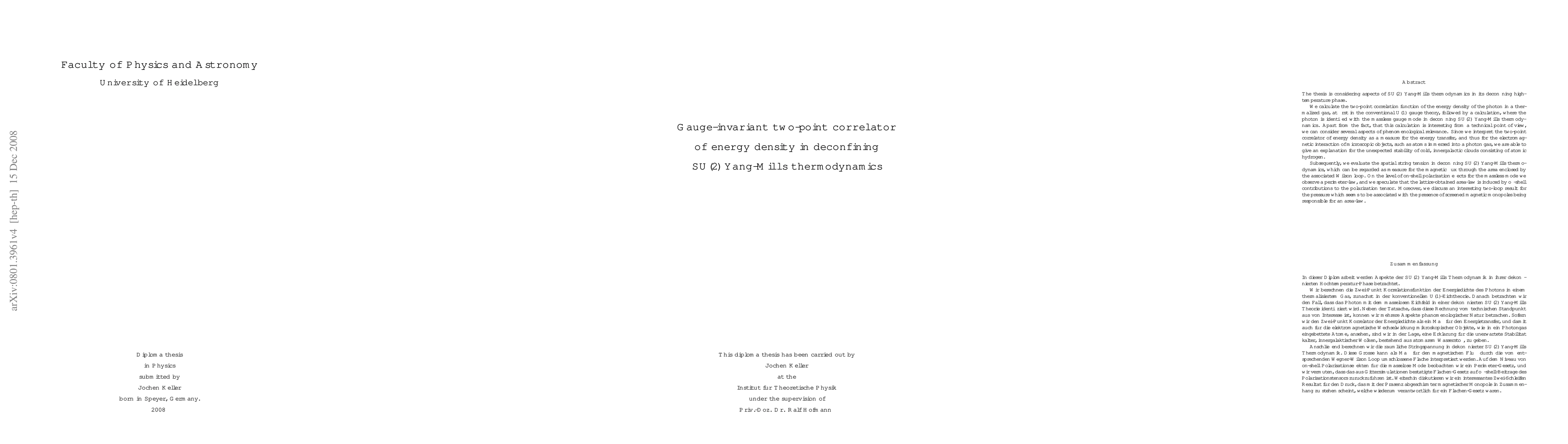 This paper investigates the gauge-invariant two-point correlator of energy density in deconfining SU(2) Yang-Mills thermodynamics, providing insights into electromagnetic interactions in photon gases and explaining the stability of cold, innergalactic hydrogen clouds. It also examines the spatial string tension and speculates on the role of off-shell contributions and screened magnetic monopoles in the area-law phenomenon.