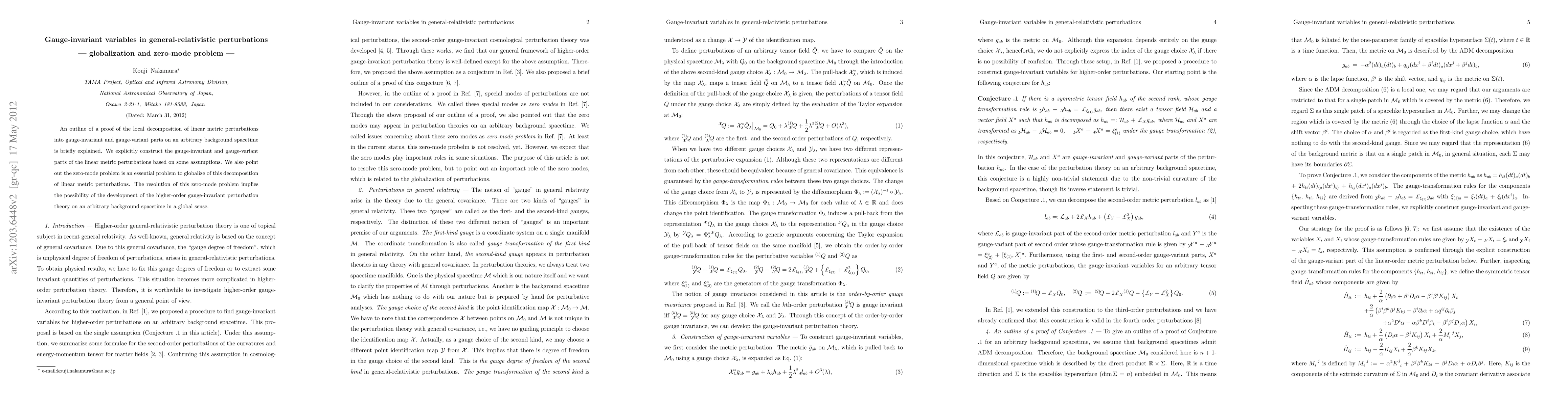 An outline of a proof of the local decomposition of linear metric perturbations into gauge-invariant and gauge-variant parts on an arbitrary background spacetime is briefly explained. We explicitly construct the gauge-invariant and gauge-variant parts of the linear metric perturbations based on some assumptions. We also point out the zero-mode problem is an essential problem to globalize of this decomposition of linear metric perturbations. The resolution of this zero-mode problem implies the possibility of the development of the higher-order gauge-invariant perturbation theory on an arbitrary background spacetime in a global sense.