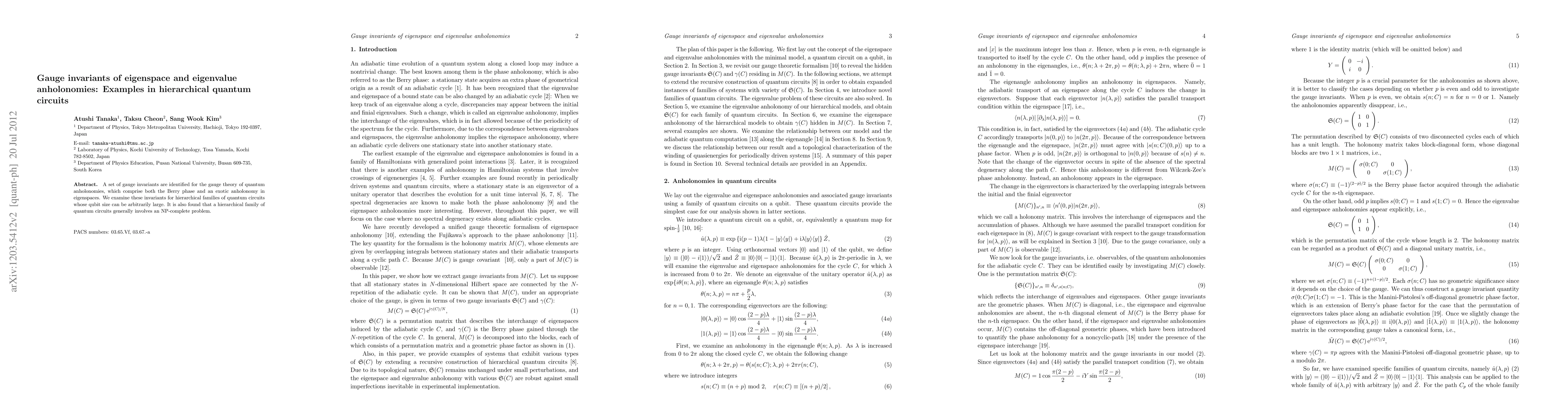 A set of gauge invariants are identified for the gauge theory of quantum anholonomies, which comprise both the Berry phase and an exotic anholonomy in eigenspaces. We examine these invariants for hierarchical families of quantum circuits whose qubit size can be arbitrarily large. It is also found that a hierarchical family of quantum circuits generally involves an NP-complete problem.