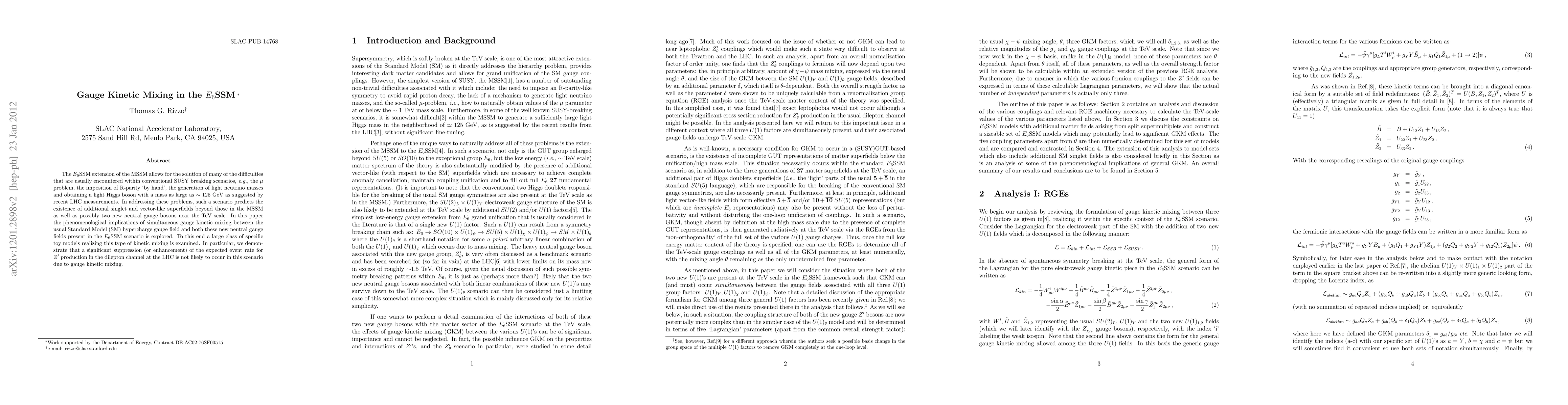The $E_6$SSM extension of the MSSM allows for the solution of many of the difficulties that are usually encountered within conventional SUSY breaking scenarios, e.g., the $\mu$ problem, the imposition of R-parity 'by hand', the generation of light neutrino masses and obtaining a light Higgs boson with a mass as large as $\sim$ 125 GeV as suggested by recent LHC measurements. In addressing these problems, such a scenario predicts the existence of additional singlet and vector-like superfields beyond those in the MSSM as well as possibly two new neutral gauge bosons near the TeV scale. In this paper the phenomenological implications of simultaneous gauge kinetic mixing between the usual Standard Model (SM) hypercharge gauge field and both these new neutral gauge fields present in the $E_6$SSM scenario is explored. To this end a large class of specific toy models realizing this type of kinetic mixing is examined. In particular, we demonstrate that a significant suppression (or enhancement) of the expected event rate for $Z'$ production in the dilepton channel at the LHC is not likely to occur in this scenario due to gauge kinetic mixing.