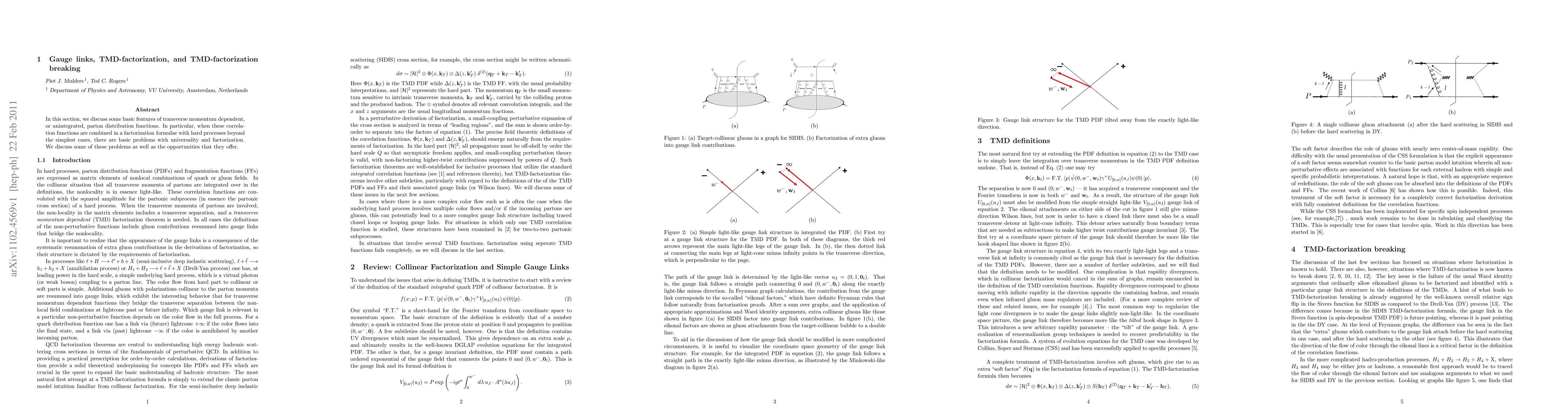 In this section, we discuss some basic features of transverse momentum dependent, or unintegrated, parton distribution functions. In particular, when these correlation functions are combined in a factorization formulae with hard processes beyond the simplest cases, there are basic problems with universality and factorization. We discuss some of these problems as well as the opportunities that they offer.