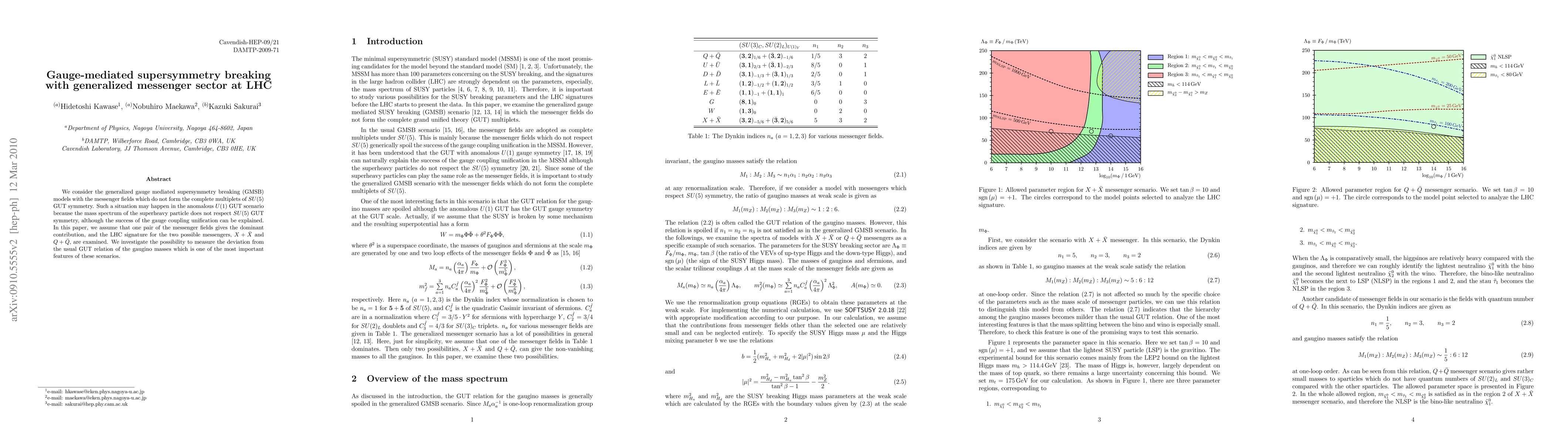 This paper explores generalized gauge-mediated supersymmetry breaking (GMSB) models with non-SU(5) GUT symmetric messenger fields, focusing on the LHC signatures of X + \bar{X} and Q + \bar{Q pairs. It investigates the potential to detect deviations from the usual GUT relation of gaugino masses, a key feature of these scenarios.