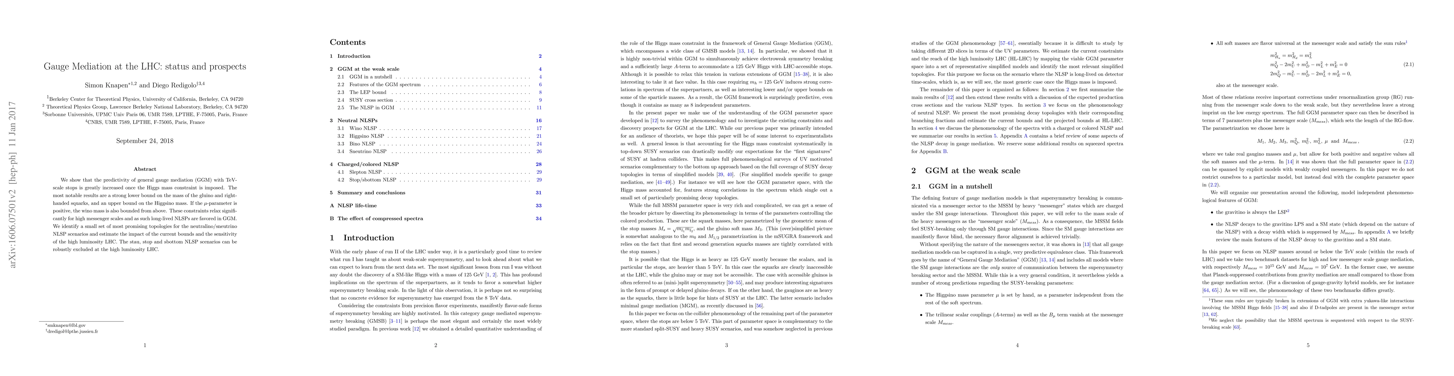 We show that the predictivity of general gauge mediation (GGM) with TeV-scale stops is greatly increased once the Higgs mass constraint is imposed. The most notable results are a strong lower bound on the mass of the gluino and right-handed squarks, and an upper bound on the Higgsino mass. If the mu-parameter is positive, the wino mass is also bounded from above. These constraints relax significantly for high messenger scales and as such long-lived NLSPs are favored in GGM. We identify a small set of most promising topologies for the neutralino/sneutrino NLSP scenarios and estimate the impact of the current bounds and the sensitivity of the high luminosity LHC. The stau, stop and sbottom NLSP scenarios can be robustly excluded at the high luminosity LHC.