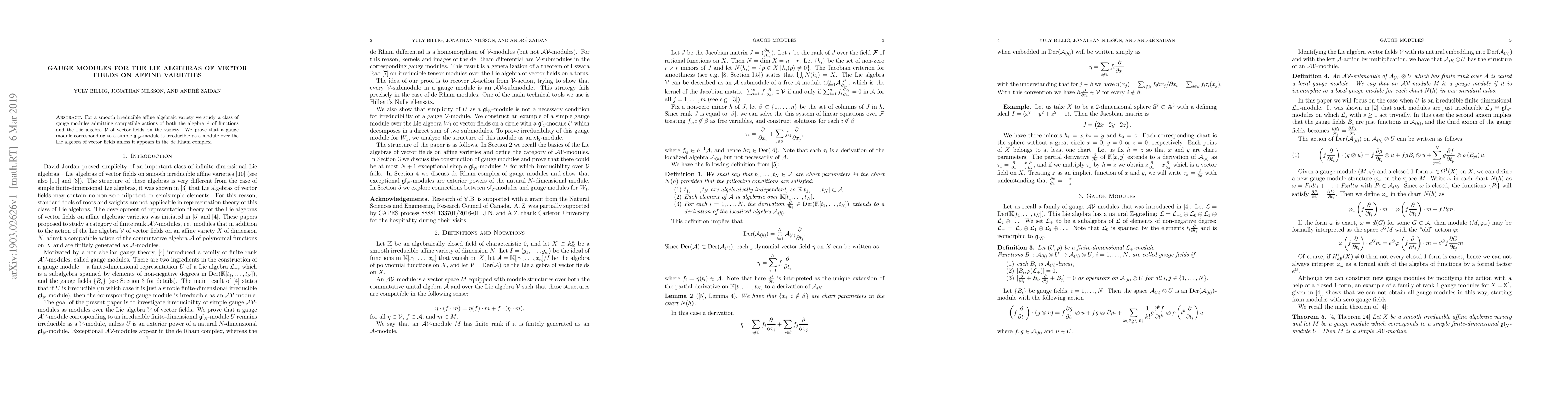 Summary: This paper investigates gauge modules for smooth affine varieties that are acted upon by both function algebras and vector field Lie algebras, proving that simple $\mathfrak{gl}_N$-module gauge modules are irreducible unless they relate to de Rham cohomology.