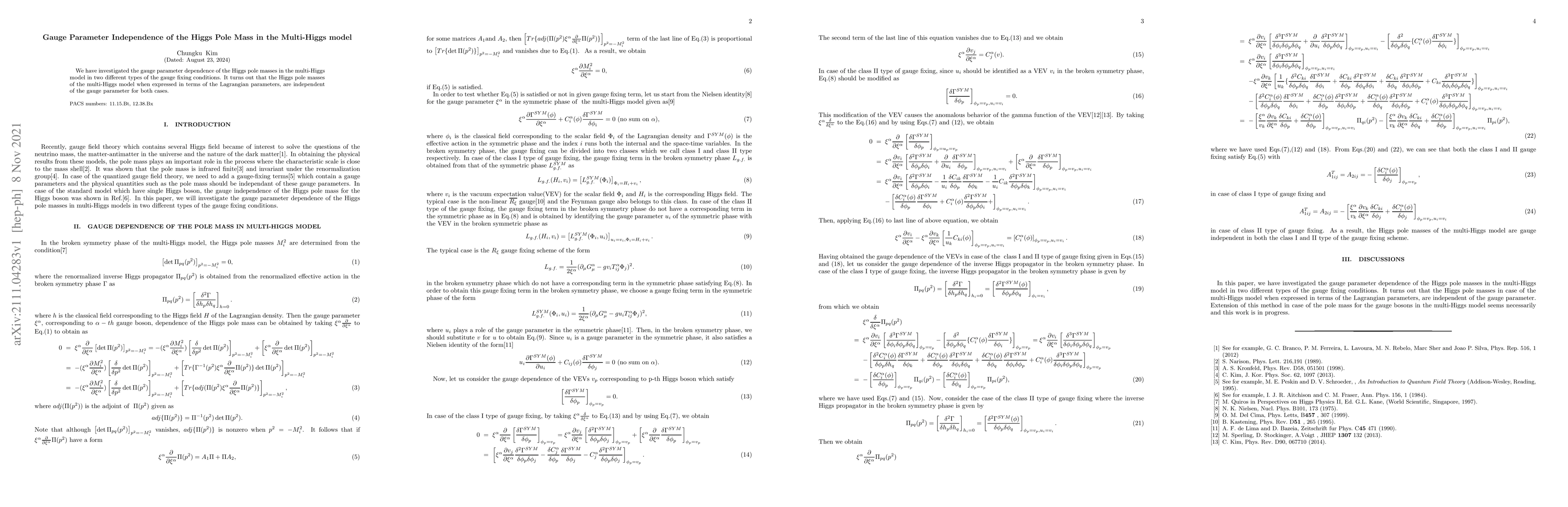 Summary: This study investigates the gauge parameter dependence of Higgs pole masses in a multi-Higgs model under different gauge fixing conditions, finding that the Higgs pole masses remain gauge parameter independent when expressed in terms of Lagrangian parameters.