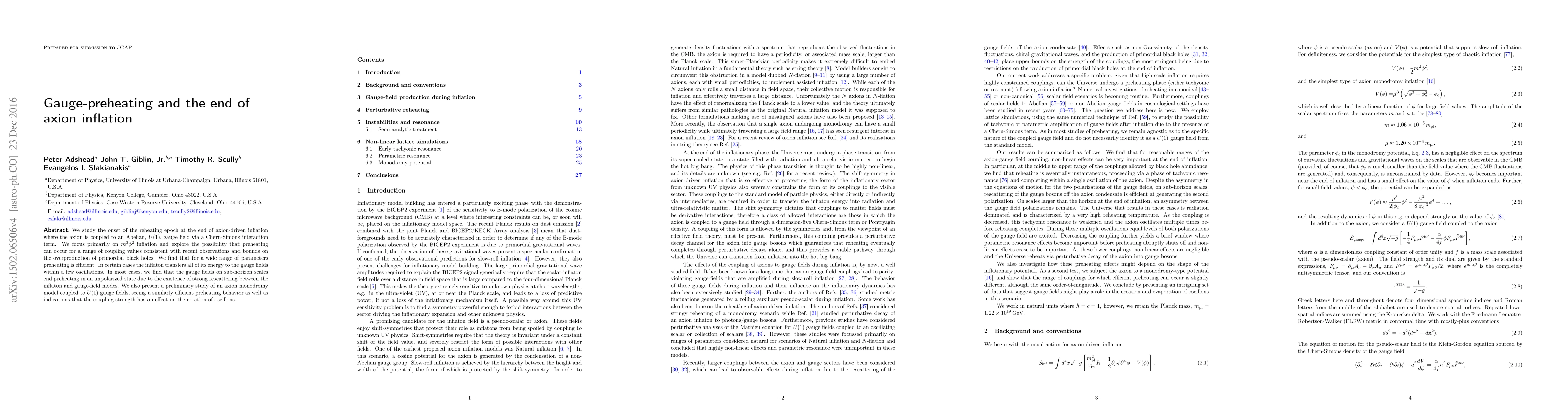 Researchers study how axion inflation ends and find that preheating is efficient in a range of parameters, with the inflaton transferring energy to gauge fields within a few oscillations.