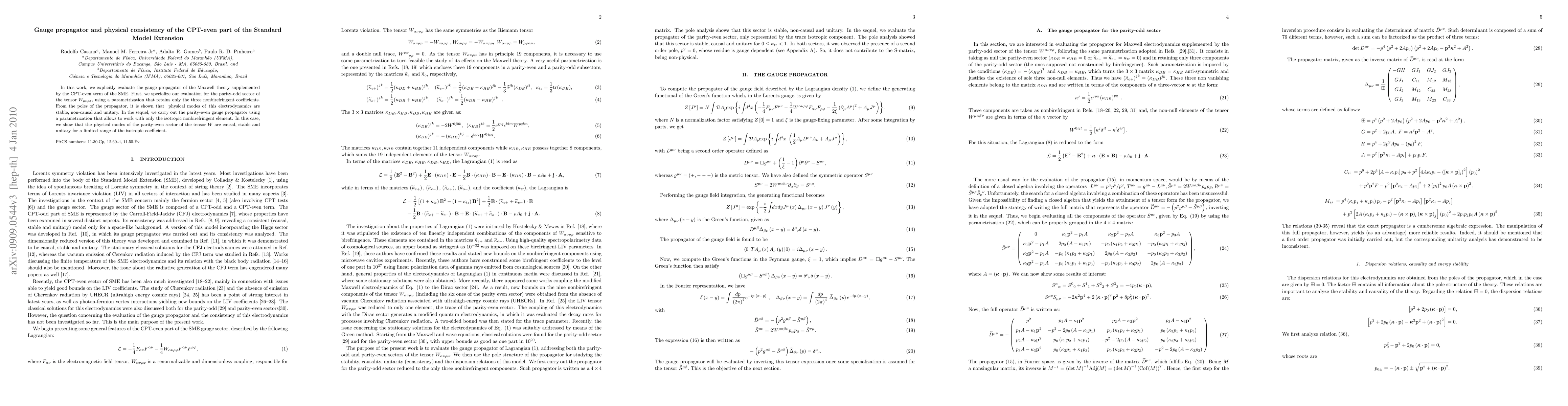In this work, we explicitly evaluate the gauge propagator of the Maxwell theory supplemented by the CPT-even term of the SME. First, we specialize our evaluation for the parity-odd sector of the tensor $W_{\mu \nu \rho \sigma}$,\ using a parametrization that retains only the three nonbirefringent coefficients. From the poles of the propagator, it is shown that physical modes of this electrodynamics are stable, non-causal and unitary. In the sequel, we carry out the parity-even gauge propagator using a parametrization that allows to work with only the isotropic nonbirefringent element. In this case, we show that the physical modes of the parity-even sector of the tensor $W$ are causal, stable and unitary for a limited range of the isotropic coefficient.