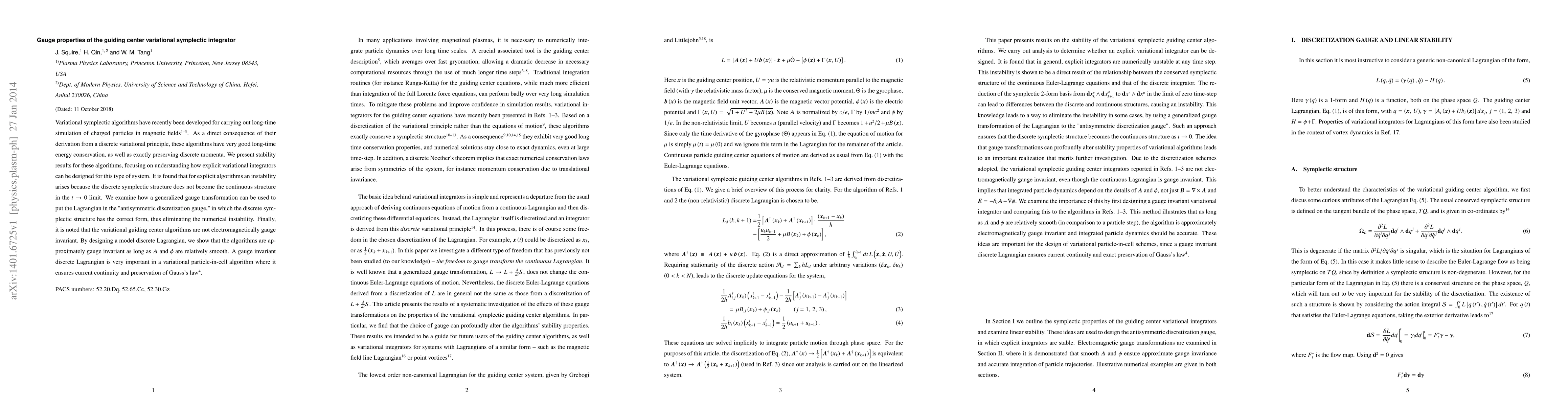 Variational symplectic algorithms have recently been developed for carrying out long-time simulation of charged particles in magnetic fields. As a direct consequence of their derivation from a discrete variational principle, these algorithms have very good long-time energy conservation, as well as exactly preserving discrete momenta. We present stability results for these algorithms, focusing on understanding how explicit variational integrators can be designed for this type of system. It is found that for explicit algorithms an instability arises because the discrete symplectic structure does not become the continuous structure in the $t \rightarrow 0$ limit. We examine how a generalized gauge transformation can be used to put the Lagrangian in the "antisymmetric discretization gauge," in which the discrete symplectic structure has the correct form, thus eliminating the numerical instability. Finally, it is noted that the variational guiding center algorithms are not electromagnetically gauge invariant. By designing a model discrete Lagrangian, we show that the algorithms are approximately gauge invariant as long as $\boldsymbol{A}$ and $\phi$ are relatively smooth. A gauge invariant discrete Lagrangian is very important in a variational particle-in-cell algorithm where it ensures current continuity and preservation of Gauss's law