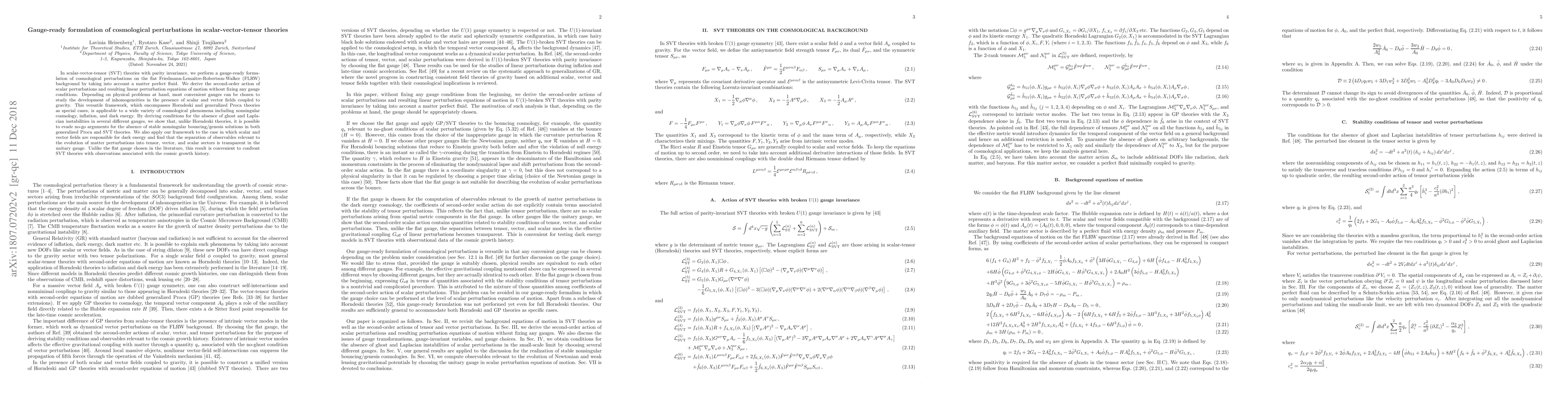This paper develops a gauge-ready formulation for cosmological perturbations in scalar-vector-tensor theories, providing a second-order action and perturbation equations without gauge fixing. It demonstrates the possibility of stable nonsingular solutions and transparent separation of observables in the unitary gauge, facilitating comparisons with observational data.