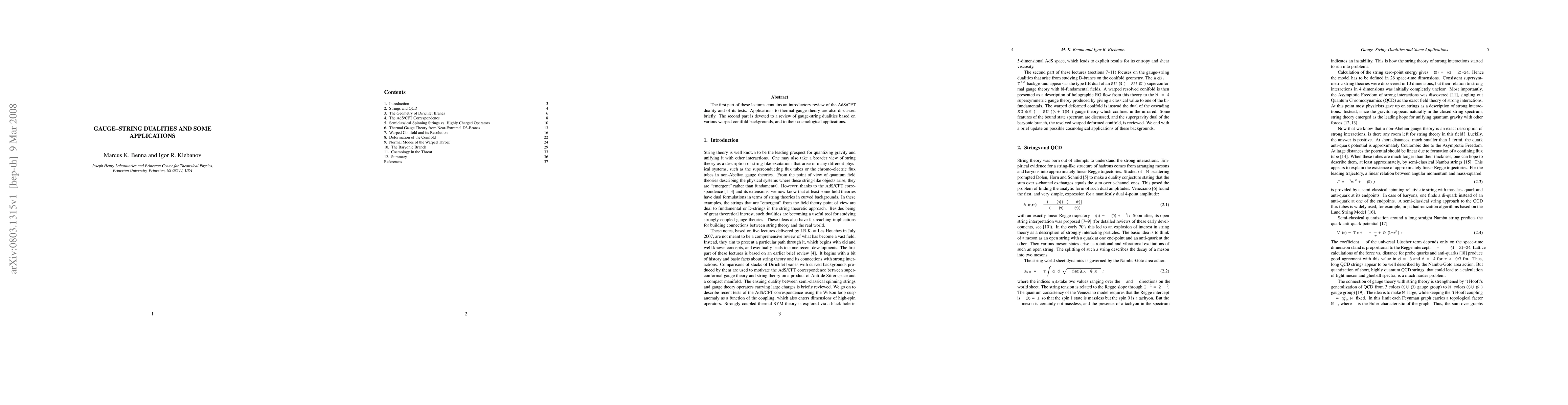 Summary: This paper reviews the AdS/CFT duality and its applications to thermal gauge theory, followed by a detailed examination of gauge-string dualities in warped conifold backgrounds and their implications for cosmology.