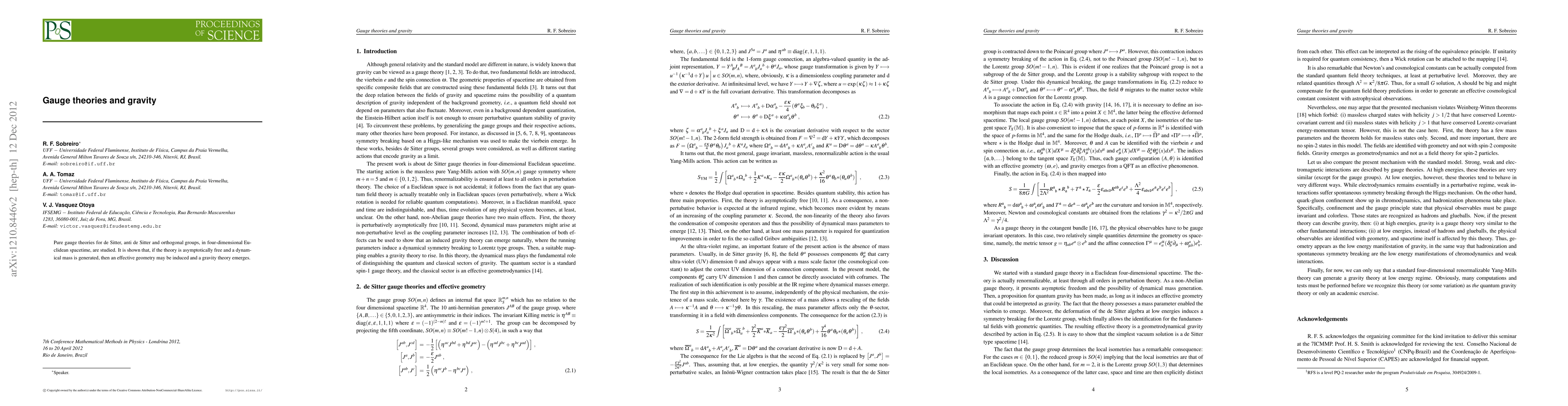 Pure gauge theories for de Sitter, anti de Sitter and orthogonal groups, in four-dimensional Euclidean spacetime, are studied. It is shown that, if the theory is asymptotically free and a dynamical mass is generated, then an effective geometry may be induced and a gravity theory emerges.