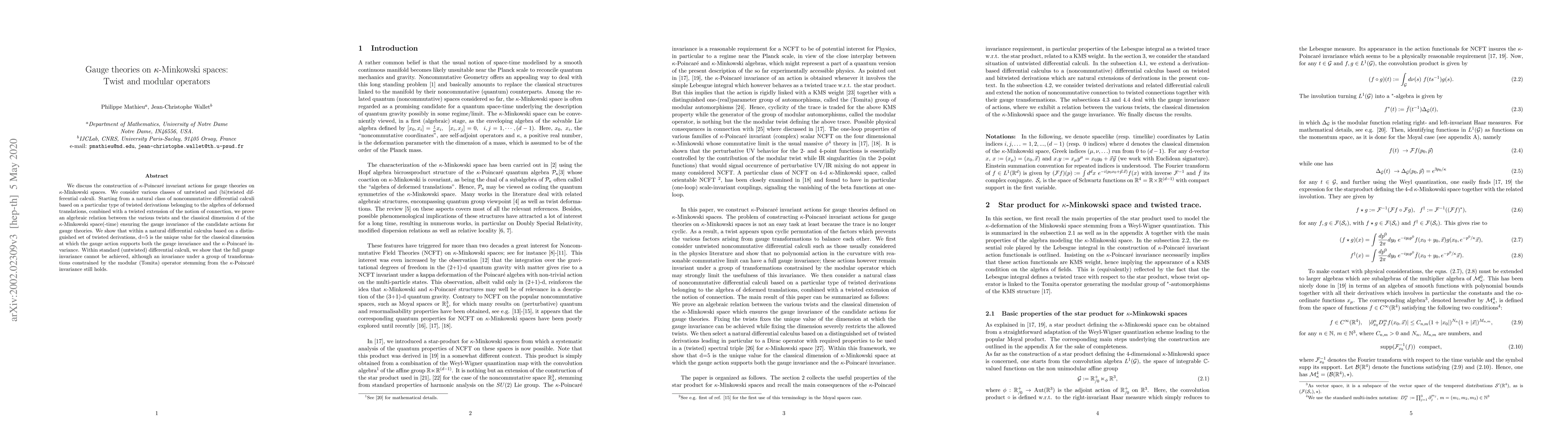 This paper constructs $\kappa$-Poincaré invariant gauge actions on $\kappa$-Minkowski spaces, demonstrating that a dimension of 5 uniquely supports both gauge and $\kappa$-Poincaré invariance using a specific twisted differential calculus. Standard untwisted calculi cannot achieve full gauge invariance but maintain invariance under transformations tied to the modular operator.