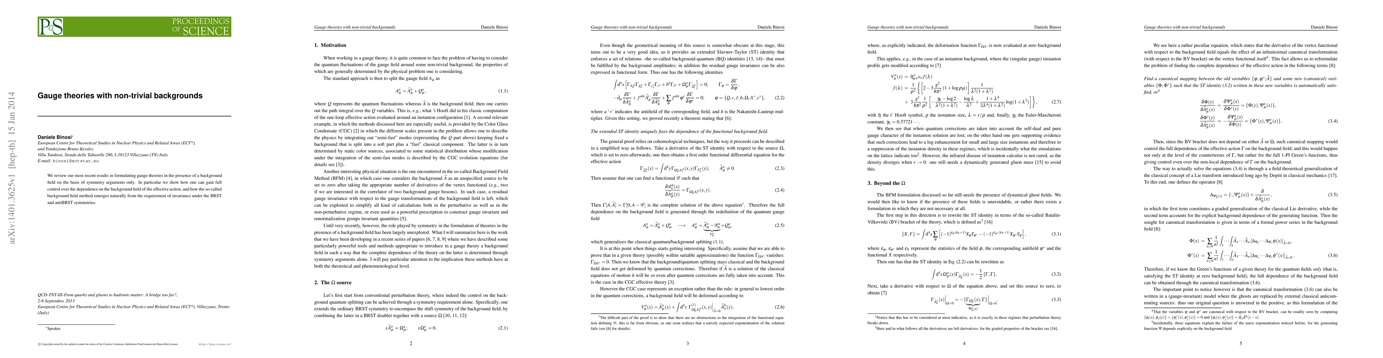 This paper reviews recent advances in formulating gauge theories with non-trivial background fields, demonstrating control over the effective action's dependence on the background and showing the emergence of the background field method from BRST and antiBRST symmetry requirements.
