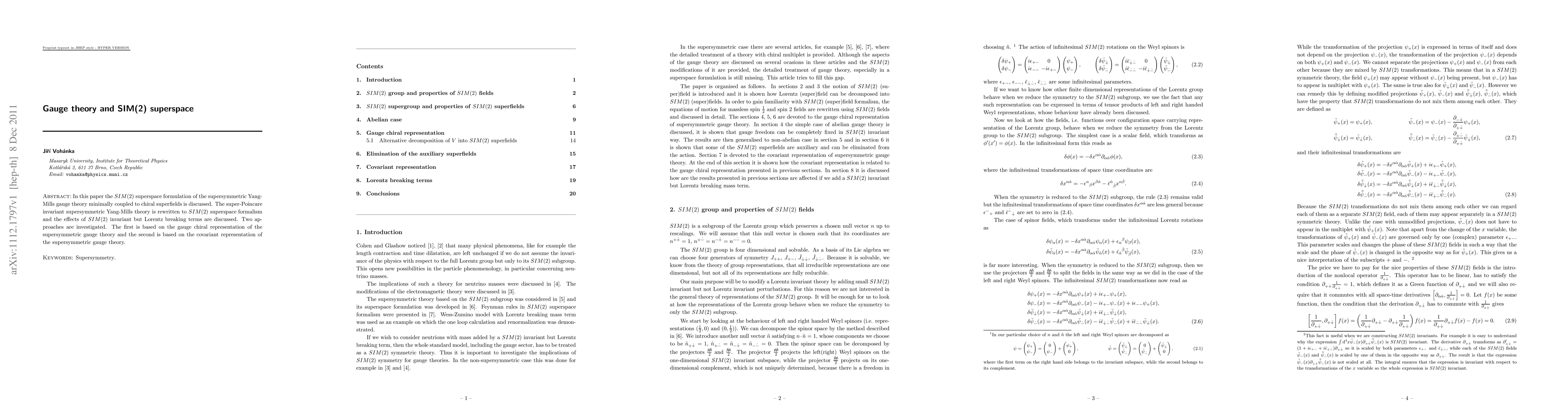 This paper explores the SIM(2) superspace formulation for supersymmetric Yang-Mills gauge theory coupled to chiral superfields, comparing gauge chiral and covariant representations to discuss Lorentz-breaking terms. Two distinct approaches are investigated for the reformulation.