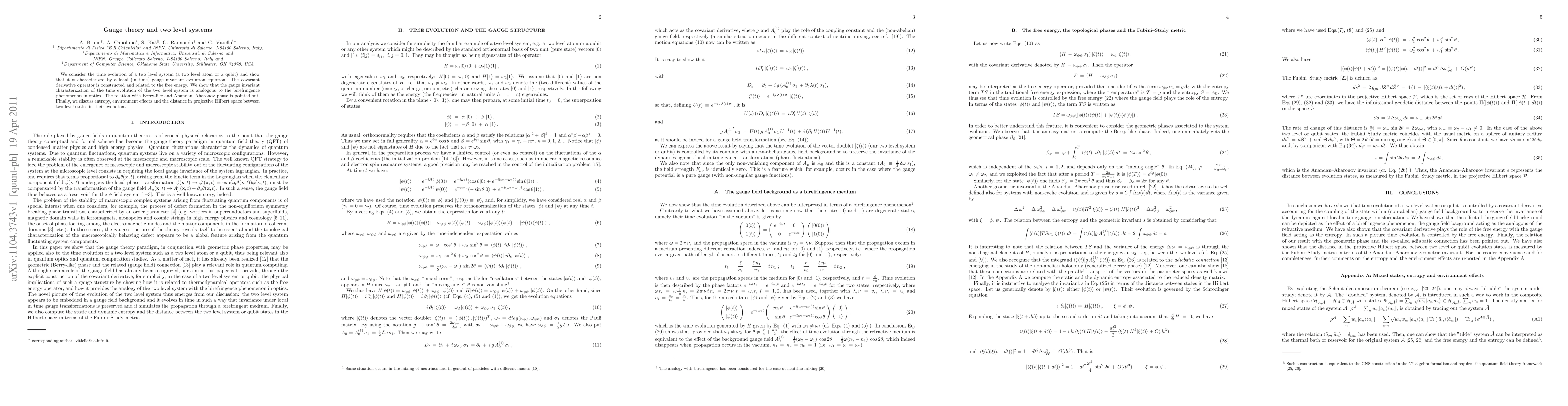 We consider the time evolution of a two level system (a two level atom or a qubit) and show that it is characterized by a local (in time) gauge invariant evolution equation. The covariant derivative operator is constructed and related to the free energy. We show that the gauge invariant characterization of the time evolution of the two level system is analogous to the birefringence phenomenon in optics. The relation with Berry-like and Anandan--Aharonov phase is pointed out. Finally, we discuss entropy, environment effects and the distance in projective Hilbert space between two level states in their evolution.
