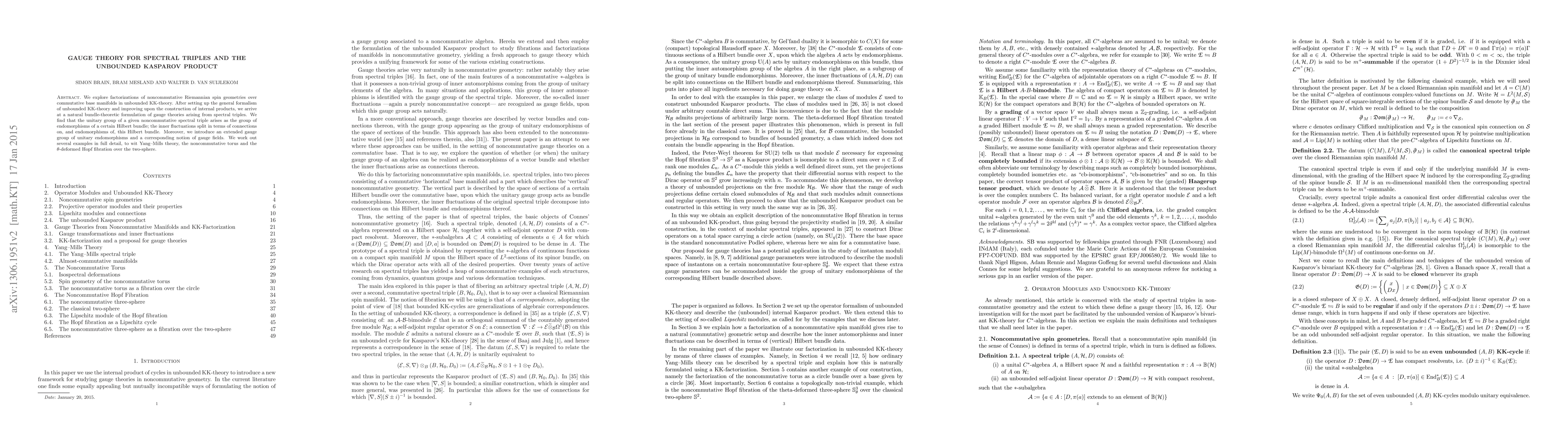 This paper develops a framework for gauge theories based on spectral triples within unbounded KK-theory, identifying the unitary group of noncommutative spectral triples as endomorphisms of a Hilbert bundle, and introduces extended gauge groups and gauge fields, exemplified through Yang-Mills theory and other cases.