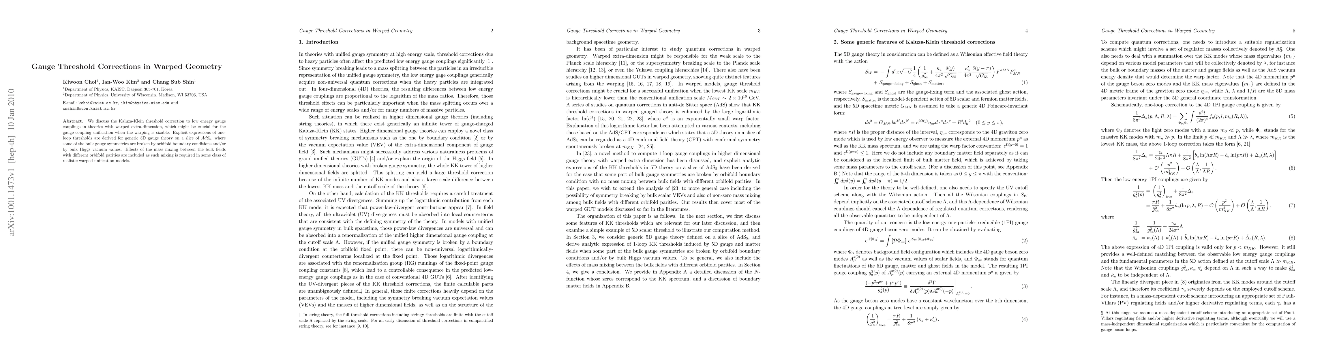 This paper derives one-loop threshold corrections for gauge couplings in warped extra-dimensional theories, crucial for gauge coupling unification, and includes mass mixing effects between bulk fields due to orbifold boundary conditions and bulk Higgs fields.