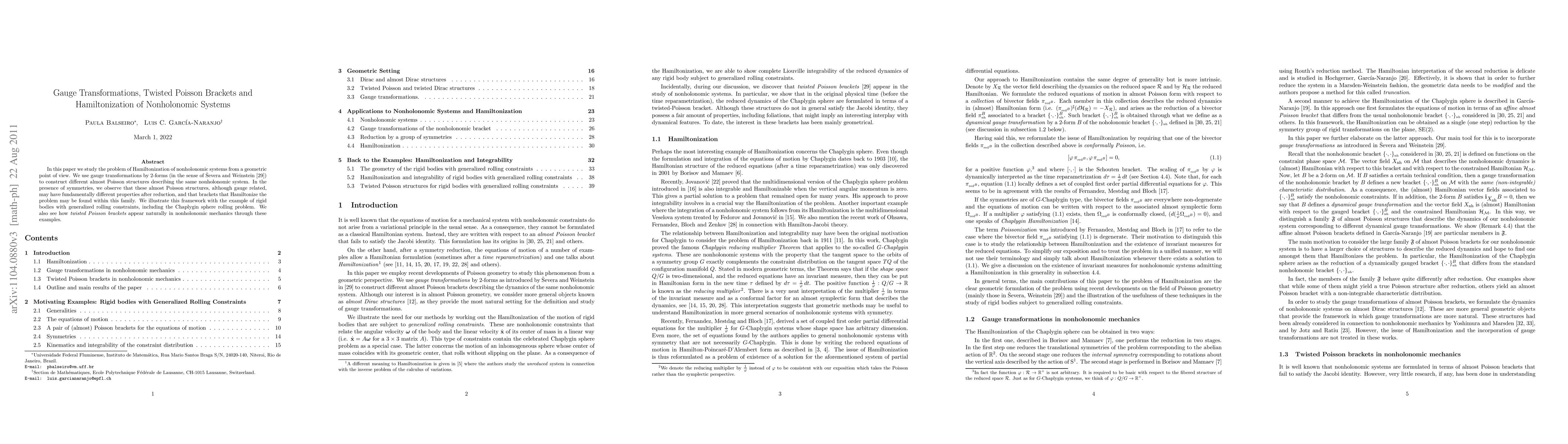 The work is notable for its geometric approach to Hamiltonization, utilizing gauge transformations of almost Poisson structures and highlighting the appearance of twisted Poisson brackets in nonholonomic mechanics, which hasn't been extensively explored before.