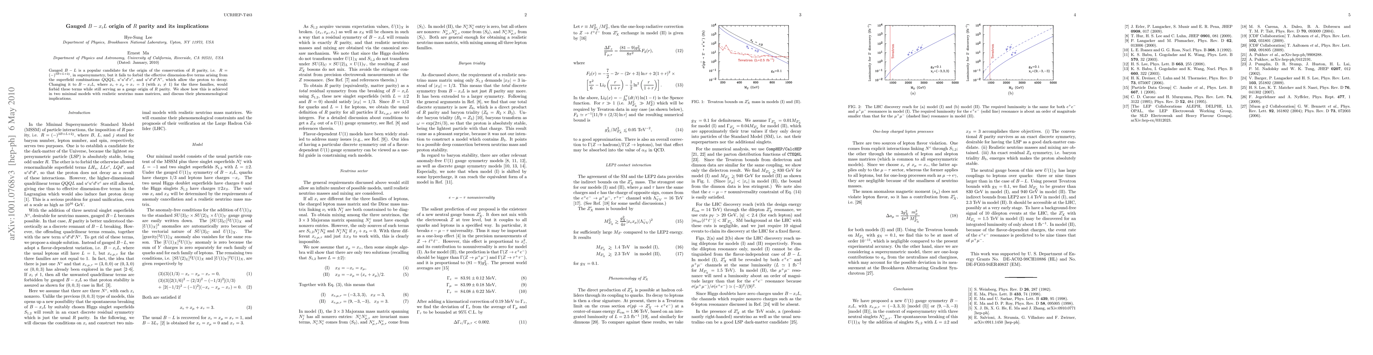 This paper explores how gauged B-x_i L, where x_e+x_\mu+x_\tau=3 and x_i≠1, can serve as an origin for R-parity conservation in supersymmetry while prohibiting proton decay. It presents two minimal models that achieve this and discusses their phenomenological implications.