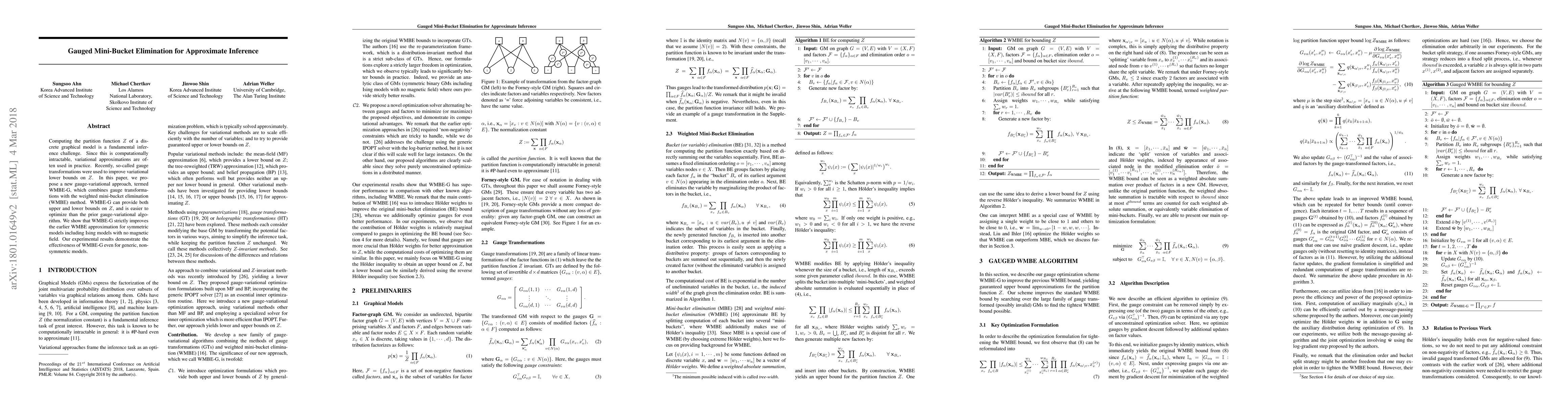 This paper introduces WMBE-G, a new gauge-variational approach combining gauge transformations with weighted mini-bucket elimination for approximate inference in discrete graphical models. WMBE-G provides both upper and lower bounds on the partition function and outperforms previous methods, especially for symmetric models like Ising models.