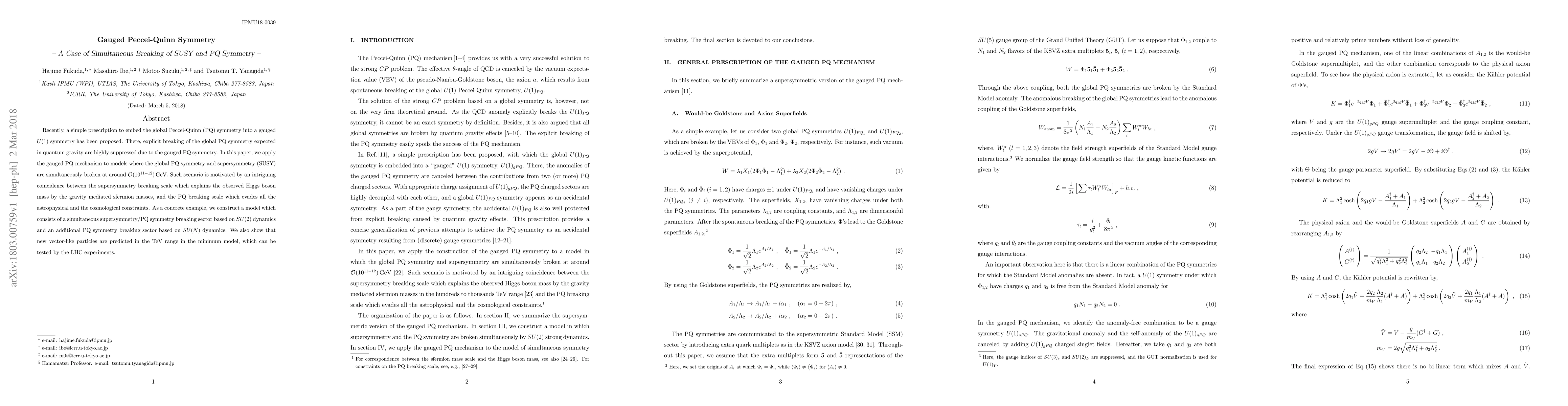 Recently, a simple prescription to embed the global Peccei-Quinn (PQ) symmetry into a gauged $U(1)$ symmetry has been proposed. There, explicit breaking of the global PQ symmetry expected in quantum gravity are highly suppressed due to the gauged PQ symmetry. In this paper, we apply the gauged PQ mechanism to models where the global PQ symmetry and supersymmetry (SUSY) are simultaneously broken at around $\mathcal{O}(10^{11-12})$\,GeV. Such scenario is motivated by an intriguing coincidence between the supersymmetry breaking scale which explains the observed Higgs boson mass by the gravity mediated sfermion masses, and the PQ breaking scale which evades all the astrophysical and the cosmological constraints. As a concrete example, we construct a model which consists of a simultaneous supersymmetry/PQ symmetry breaking sector based on $SU(2)$ dynamics and an additional PQ symmetry breaking sector based on $SU(N)$ dynamics. We also show that new vector-like particles are predicted in the TeV range in the minimum model, which can be tested by the LHC experiments.