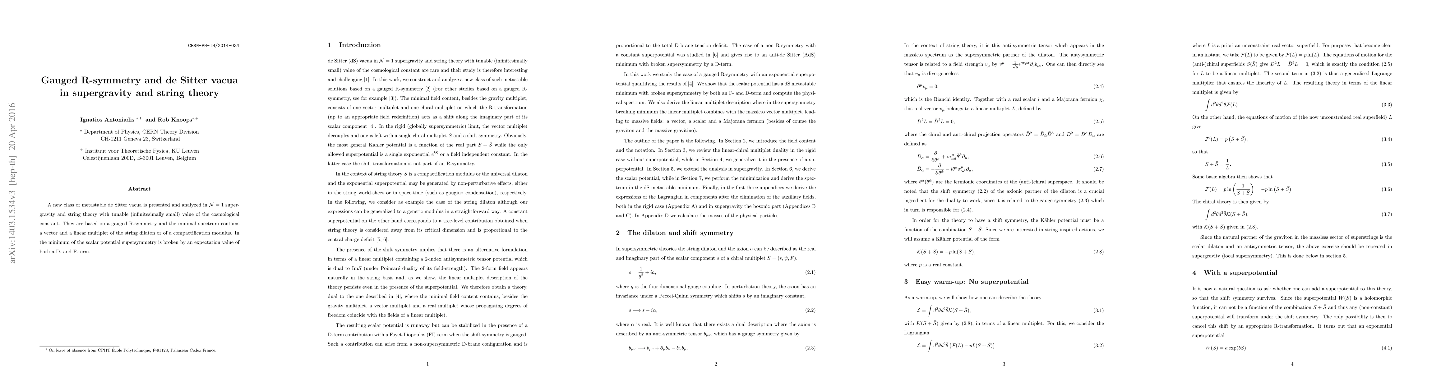 A new class of metastable de Sitter vacua is presented and analyzed in N =1 supergravity and string theory with tunable (infinitesimally small) value of the cosmological constant. They are based on a gauged R-symmetry and the minimal spectrum contains a vector and a linear multiplet of the string dilaton or of a compactification modulus. In the minimum of the scalar potential supersymmetry is broken by an expectation value of both a D- and F-term.