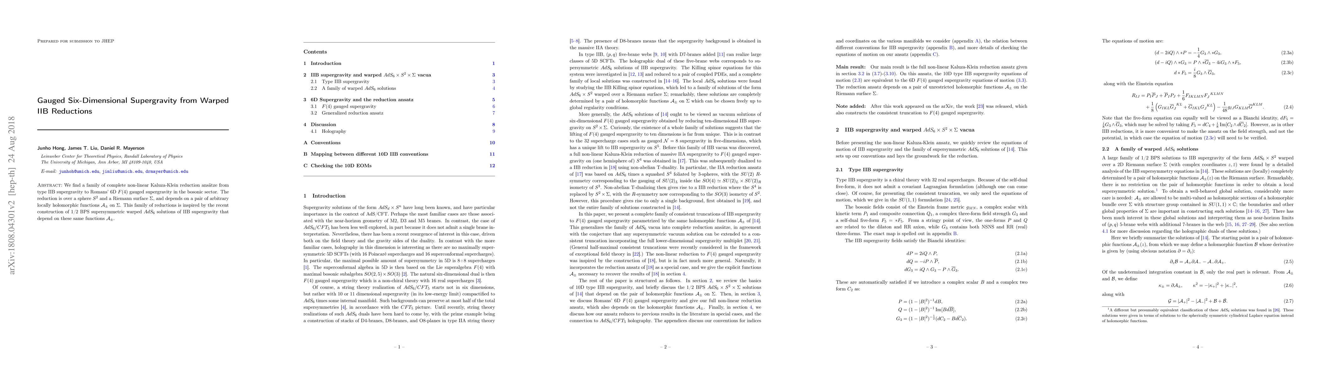 This paper presents a method for reducing type IIB supergravity to a family of 6D $F(4)$ gauged supergravity theories through non-linear Kaluza-Klein reductions over $S^2$ and $\Sigma$, utilizing locally holomorphic functions $\mathcal{A}_{\pm}$ inspired by 1/2 BPS warped $AdS_6$ solutions. The reductions are complete and cover the bosonic sector.