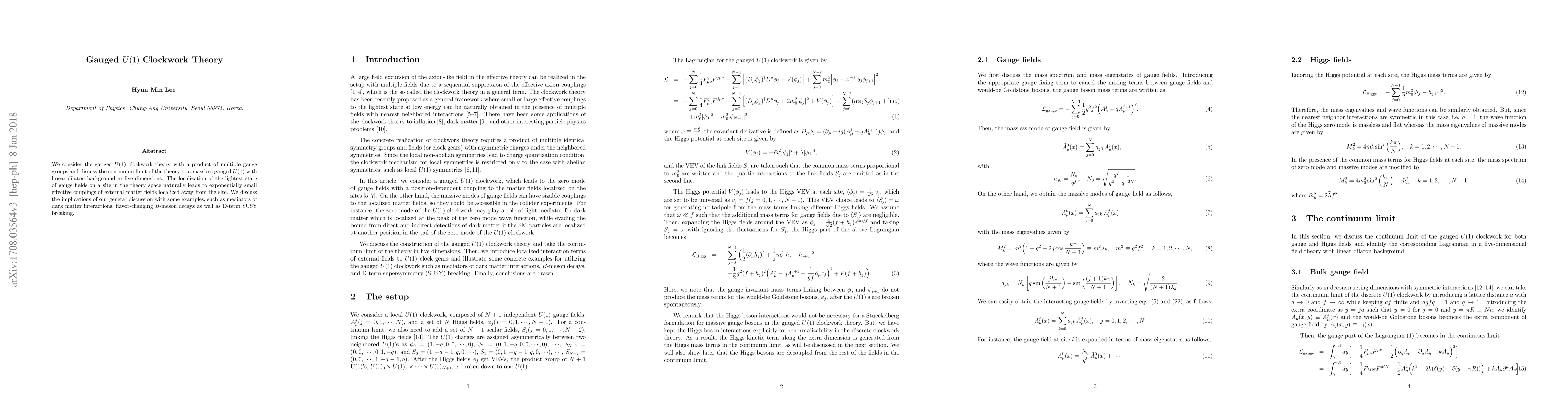 The gauged $U(1)$ clockwork theory is analyzed to explore its continuum limit and implications for dark matter and flavor physics. The lightest gauge field state localization results in exponentially small effective couplings for external matter fields, with applications to dark matter mediators and $B$-meson decays.