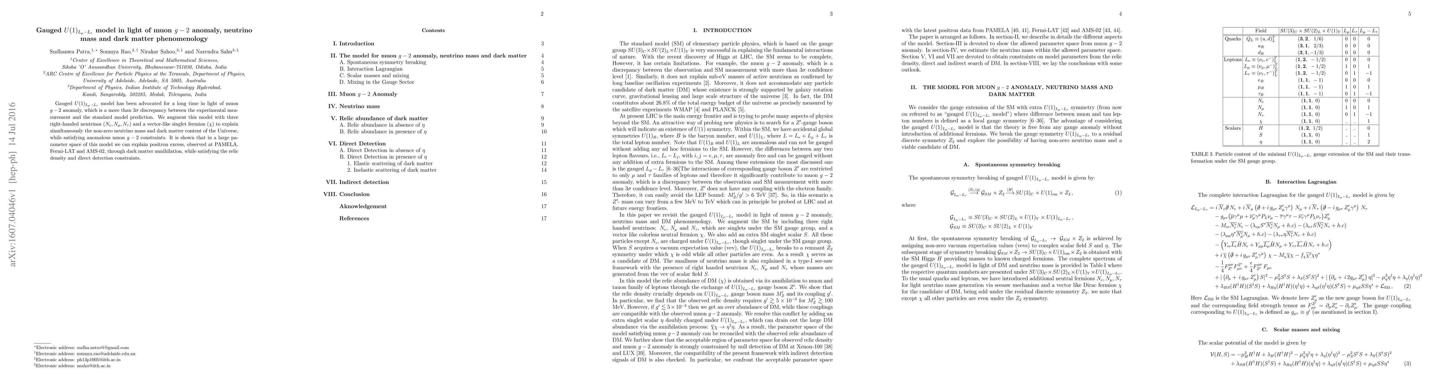 This paper explores a gauged $U(1)_{L_\mu - L_\tau}$ model to address the muon $g-2$ anomaly, neutrino mass, and dark matter, introducing right-handed neutrinos and a vector-like fermion to explain these phenomena and satisfy observational constraints. The model can also account for positron excess through dark matter annihilation.