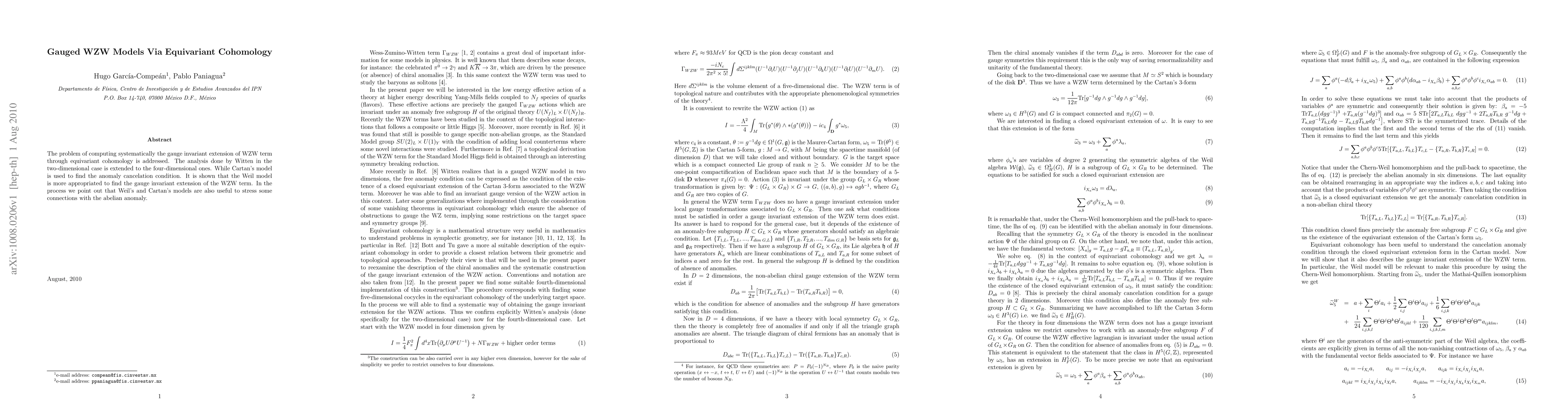 This paper systematically computes the gauge invariant extension of the WZW term using equivariant cohomology, extending Witten's analysis from two to four dimensions. It finds that the Weil model is more suitable than the Cartan model for this purpose and highlights connections with the abelian anomaly.