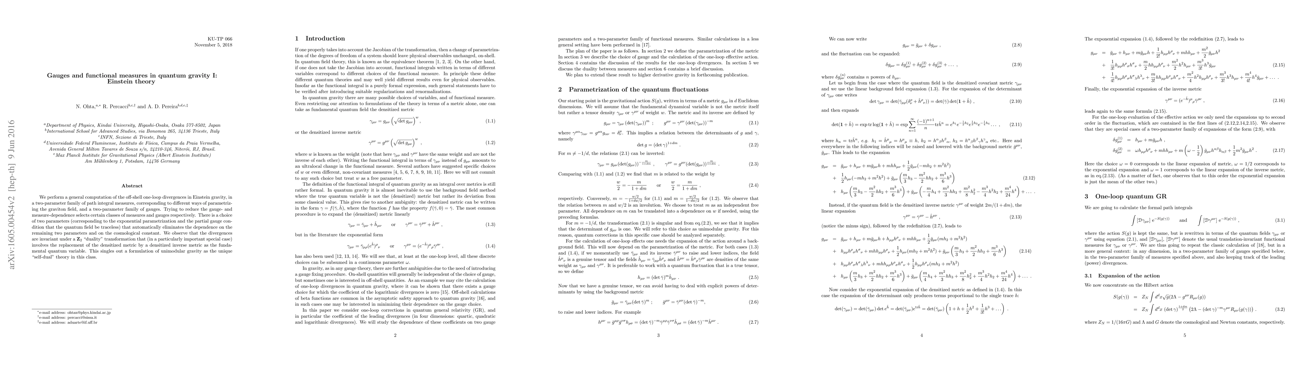 This paper investigates off-shell one-loop divergences in Einstein gravity across various gauges and functional measures. It identifies a unique formulation of unimodular gravity that eliminates gauge- and measure-dependence, revealing a $\mathbf{Z}_2$ duality transformation that highlights the theory's self-duality.