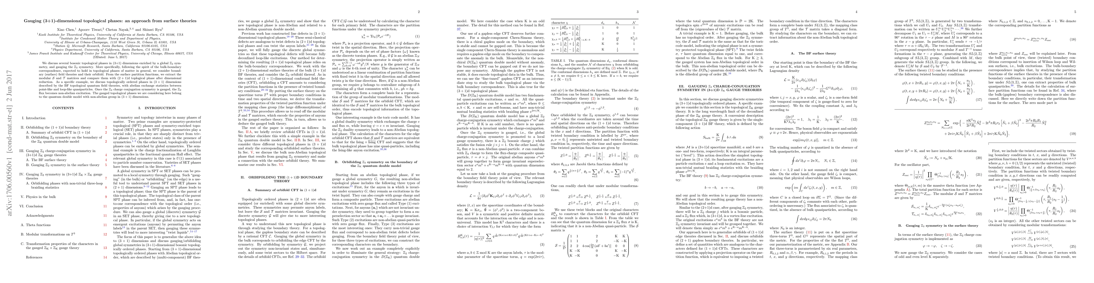This paper explores bosonic topological phases in (3+1) dimensions with a global $\mathbb{Z}_2$ symmetry, gauging this symmetry and examining its implications on surface field theories. It uses the bulk-boundary correspondence to analyze the resulting non-abelian excitations and compares the modular matrices from surface theories to those of (2+1)d topological phases.