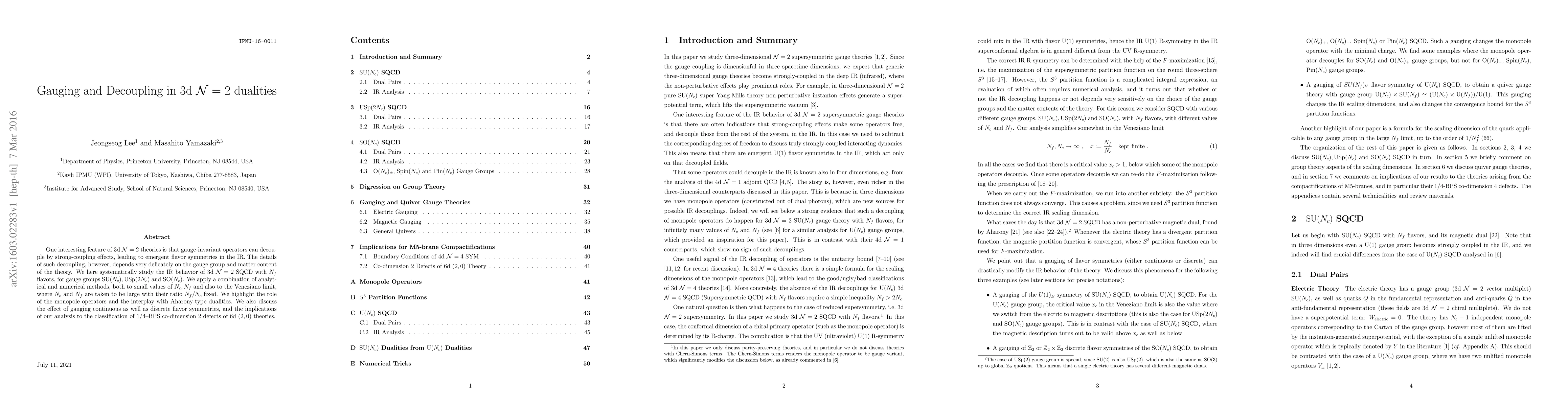 This paper systematically investigates the infrared behavior of 3d $\mathcal{N}=2$ SQCD, focusing on gauge-invariant operator decoupling and emergent flavor symmetries, using both analytical and numerical approaches. The study highlights the influence of monopole operators and the role of dualities, gauging continuous and discrete flavor symmetries, and discusses implications for classifying $1/4$--BPS defects in 6d $(2,0)$ theories.