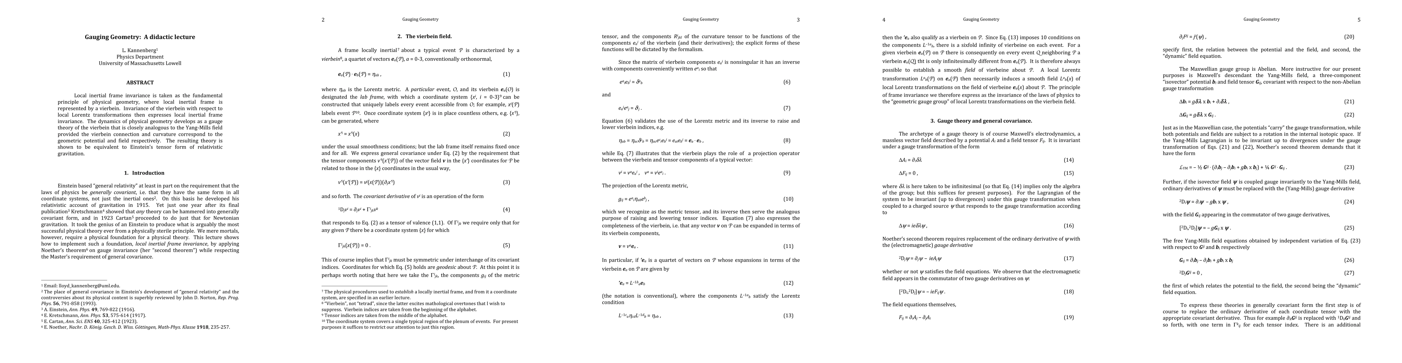 Local inertial frame invariance is taken as the fundamental principle of physical geometry, where a local inertial frame is represented by a verbein. Invariance of the vierbein with respect to local Lorentz transformations then expresses local inertial frame invariance. The dynamics of physical geometry develops as a gauge theory of the verbein that is closely analogous to the Yang-Mills field provided the verbein connection and curvature correspond to the geometric potential and field respectively. The resulting theory is shown to be equivalent to Einstein's tensor form of relativistic gravitation.