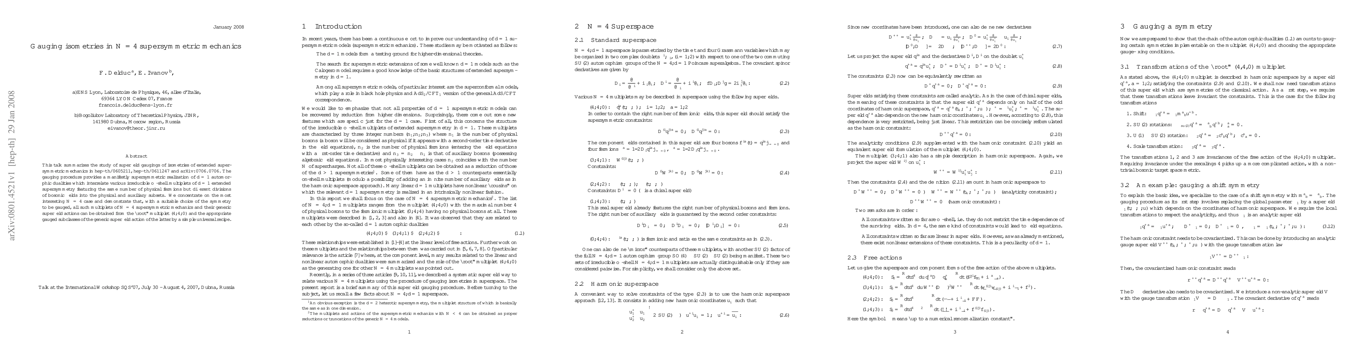 This paper explores the gauging of isometries in N=4 supersymmetric mechanics, providing a supersymmetric framework for d=1 automorphic dualities. It demonstrates that all N=4 multiplets can be derived from the "root" multiplet (4,4,0) using a universal recipe.