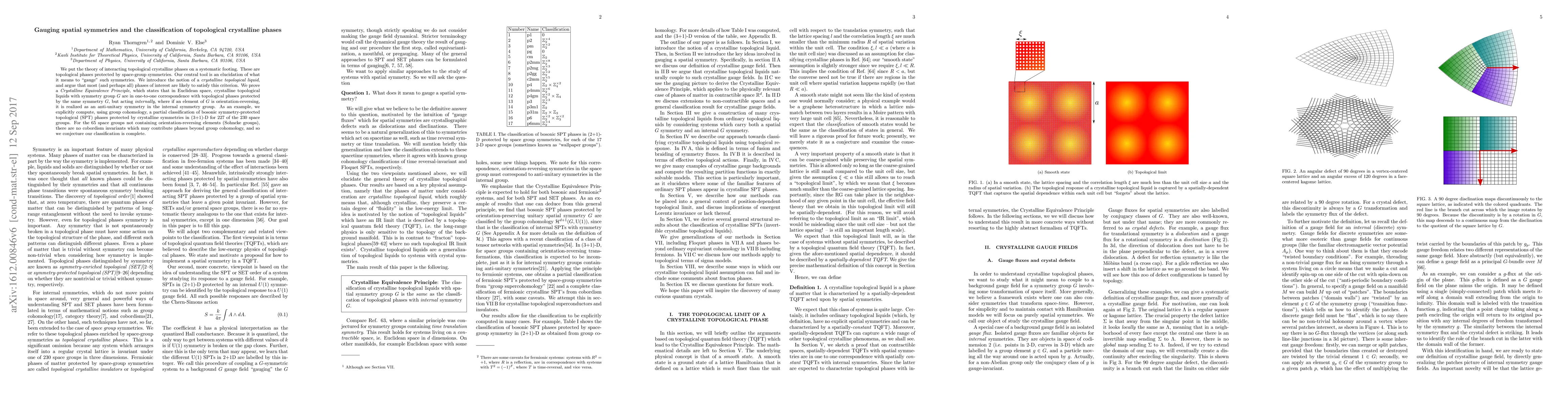 This paper systematically develops the theory of topological crystalline phases, protected by space-group symmetries, and introduces the concept of "crystalline topological liquids." It proves a Crystalline Equivalence Principle linking these liquids to internal symmetries, and provides a partial classification of bosonic SPT phases in (3+1)-D for most space groups using group cohomology.