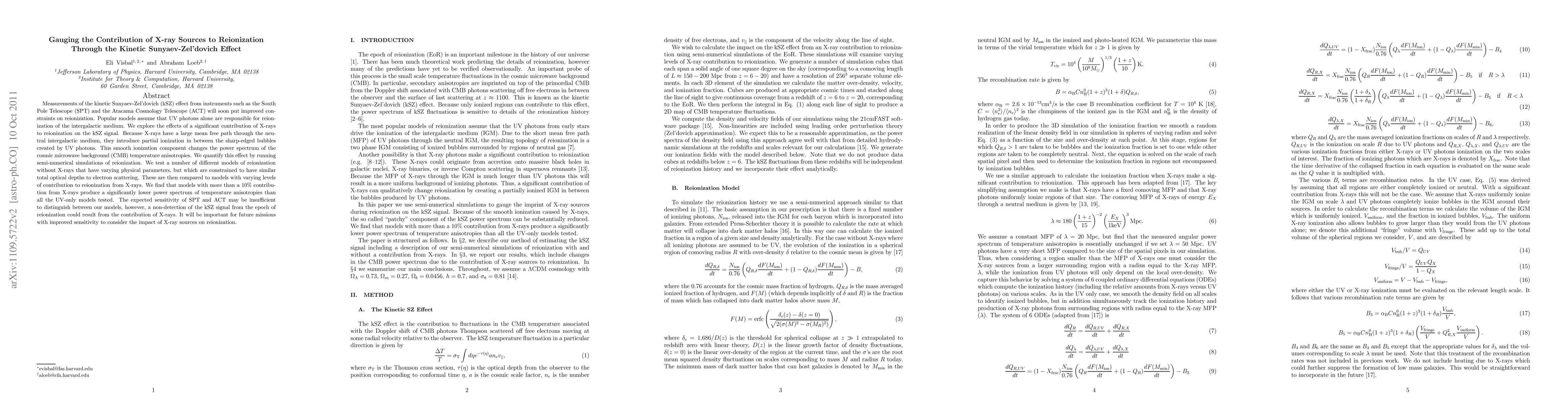 This paper investigates the impact of X-ray sources on reionization through the kinetic Sunyaev-Zel'dovich (kSZ) effect, finding that models with X-ray contributions over 10% produce a lower kSZ power spectrum compared to UV-only models. Future high-sensitivity instruments may need to account for X-ray contributions to accurately measure reionization.