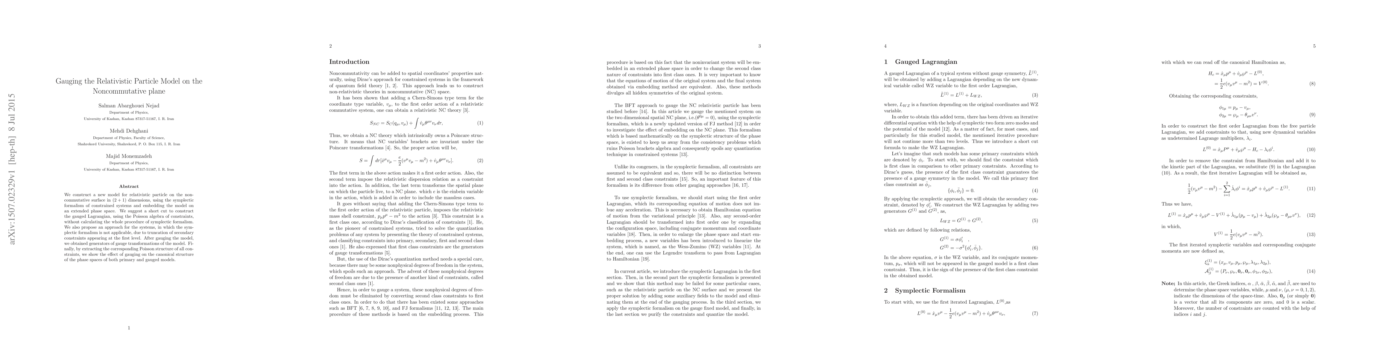 Researchers developed a new model for relativistic particles on noncommutative planes, exploring its gauge transformations and implications for canonical structures.