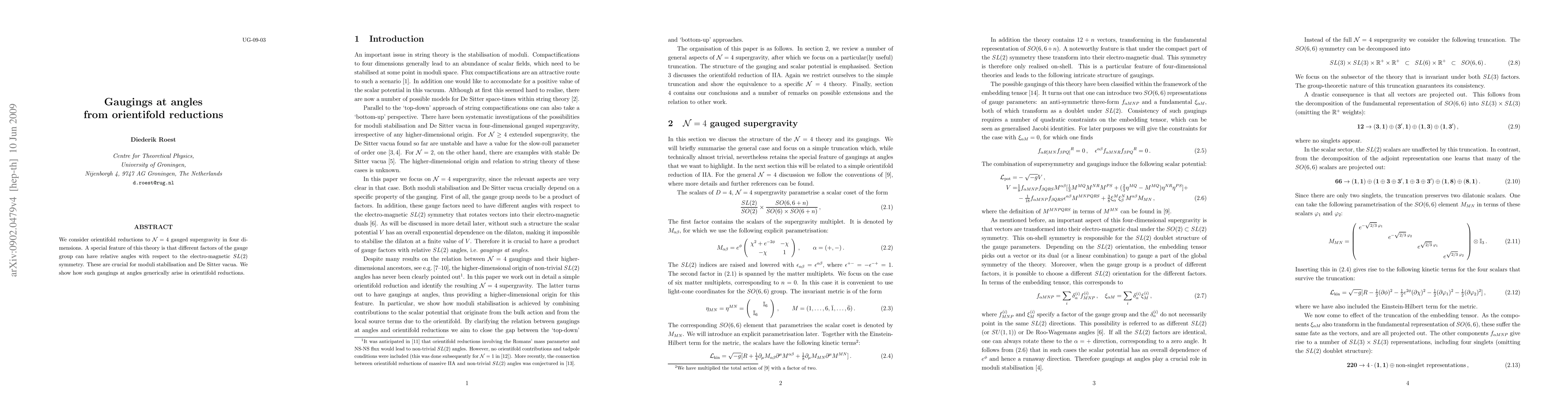 Researchers show how orientifold reductions can generate gaugings with relative angles in N=4 gauged supergravity theory, crucial for moduli stabilisation and De Sitter vacua.