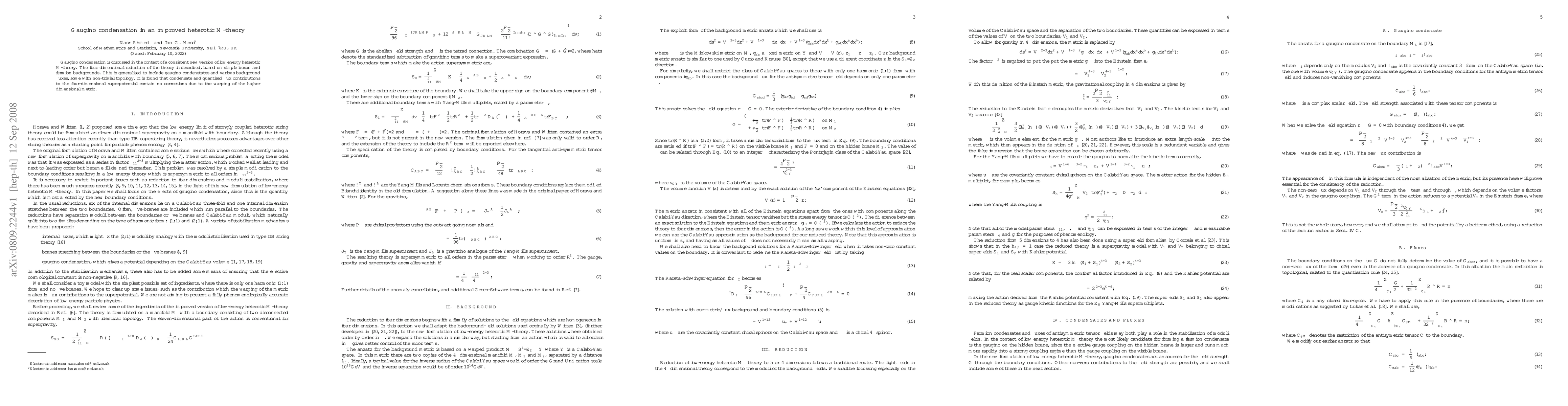 Gaugino condensation is discussed in the context of a consistent new version of low energy heterotic M-theory. The four dimensional reduction of the theory is described, based on simple boson and fermion backgrounds. This is generalised to include gaugino condenstates and various background fluxes, some with non-trivial topology. It is found that condensate and quantised flux contributions to the four-dimensional superpotential contain no corrections due to the warping of the higher dimensional metric.