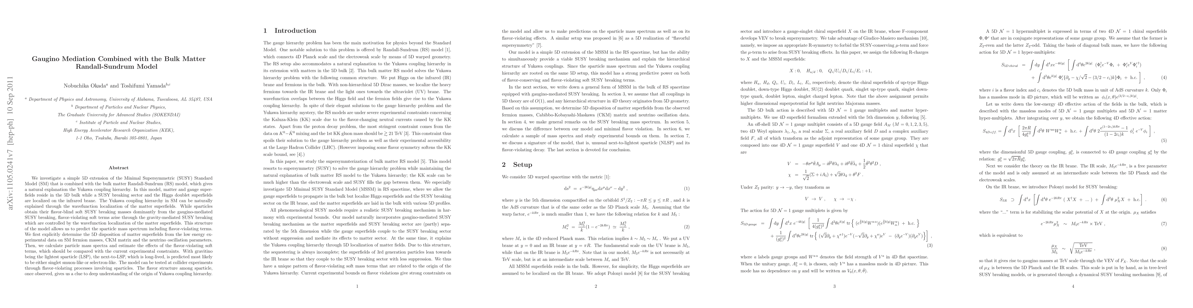 We investigate a simple 5D extension of the Minimal Supersymmetric (SUSY) Standard Model (SM) that is combined with the bulk matter Randall-Sundrum (RS) model, which gives a natural explanation the Yukawa coupling hierarchy. In this model, matter and gauge superfields reside in the 5D bulk while a SUSY breaking sector and the Higgs doublet superfields are localized on the infrared brane. The Yukawa coupling hierarchy in SM can be naturally explained through the wavefunction localization of the matter superfields. While sparticles obtain their flavor-blind soft SUSY breaking masses dominantly from the gaugino-mediated SUSY breaking, flavor-violating soft terms arise through the gravity-mediated SUSY breaking which are controlled by the wavefunction localization of the matter superfields. This structure of the model allows us to predict the sparticle mass spectrum including flavor-violating terms. We first explicitly determine the 5D disposition of matter superfields from the low energy experimental data on SM fermion masses, CKM matrix and the neutrino oscillation parameters. Then, we calculate particle mass spectra and estimate the effects of the flavor-violating soft terms, which should be compared with the current experimental constraints. With gravitino being the lightest sparticle (LSP), the next-to-LSP, which is long-lived, is predicted most likely to be either singlet smuon-like or selectron-like. The model can be tested at collider experiments through flavor-violating processes involving sparticles. The flavor structure among sparticle, once observed, gives us a clue to deep understanding of the origin of Yukawa coupling hierarchy.